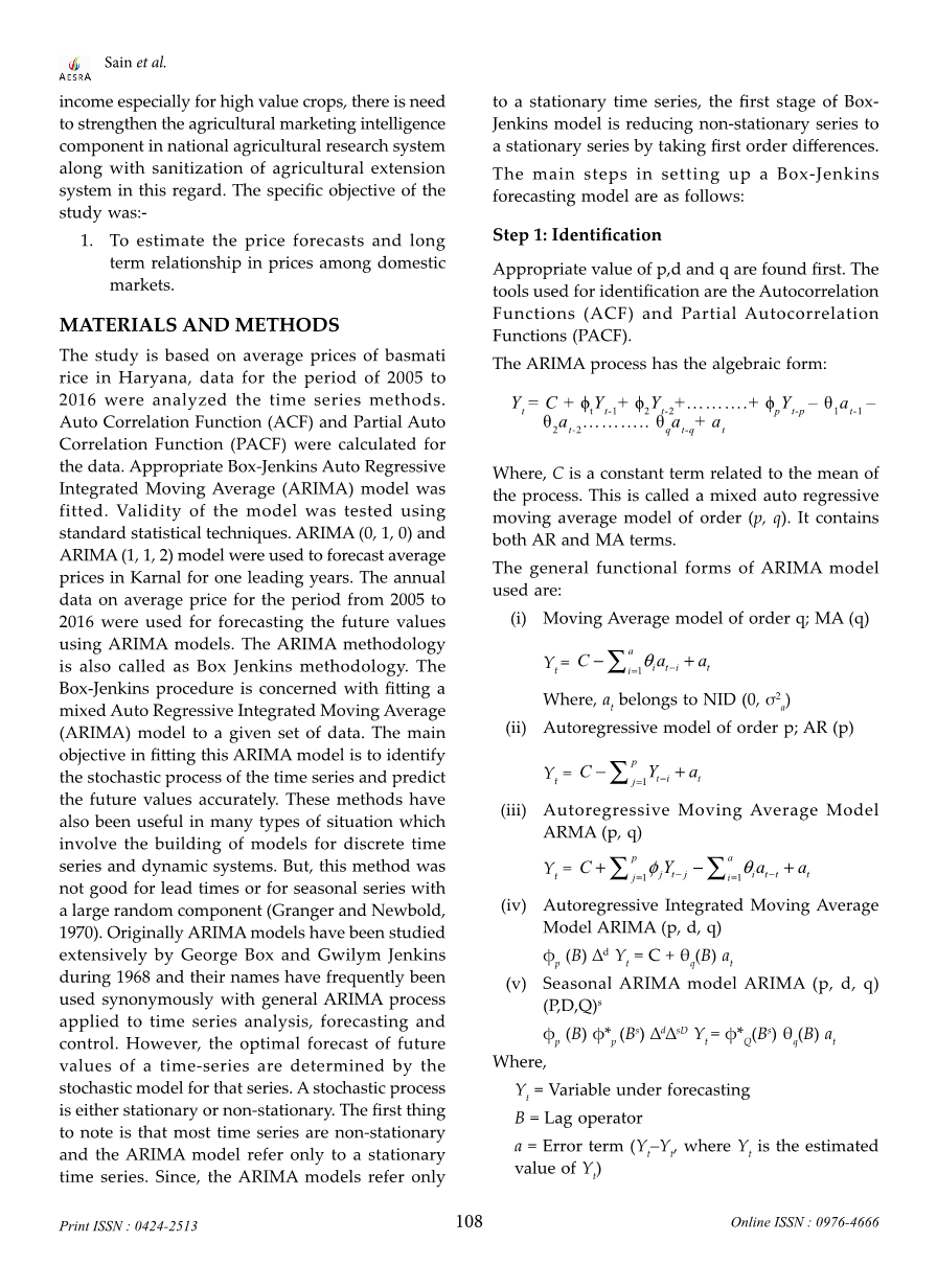 出处:Sain, V., Kumar, R. and Kundu, K.K. (2020). Price analysis and forecasting of basmati rice crop in Karnal district of Haryana. Economic Affairs, 65(1): 107-115.