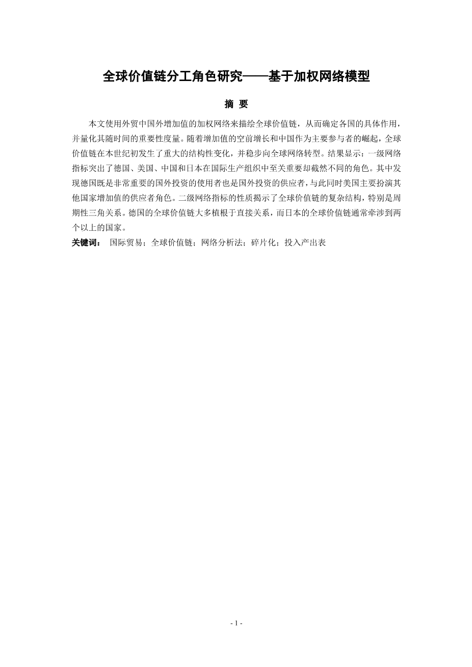 全球价值链分工角色研究一基 于加权网络模型外文翻译资料 2023-02-15 10:56:15 英语原文共 21 页,剩余内容已隐藏,支付完成后下载完整资料 英语译文共 20 页,剩余内容已隐藏,支付完成后下载完整资料 资料编号:[20489],资料为PDF文档或Word文档,PDF文档可免费转换为Word 原文和译文剩余内容已隐藏,您需要先支付 30元 才能查看原文和译文全部内容!立即支付 发小红书推广免费获取该资料资格。点击链接进入获取推广文案即可: Ai一键组稿 | 降AI率 | 降重复率 | 论文一键排版 PREVIOUS NEXT 您可能感兴趣的文章 基于一个幂GARCH模型对黄金市场的研究外文翻译资料 主成分分析教程外文翻译资料 逐步回归的显著性检验外文翻译资料 大数据挖掘:回顾外文翻译资料 DSSAE-BBOA:基于深度学习的气象大数据分析和可视化外文翻译资料 使用G或K点模式空间统计的统计推断外文翻译资料 李代数的扩张结构外文翻译资料 灾民居住偏好转变:以2016年日本熊本地震后益城三波面板数据为例外文翻译资料 影响印尼证券交易所投资的因素-增进对资本市场的了解外文翻译资料 基于JMP的教育数据挖掘外文翻译资料