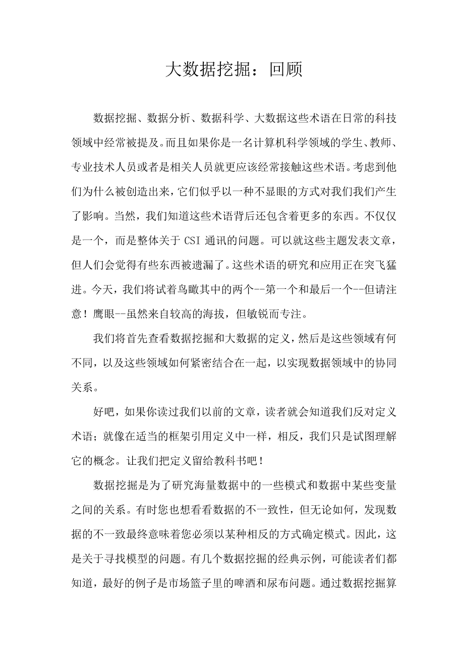 大数据挖掘:回顾外文翻译资料 2023-04-01 15:48:35 英语原文共 4 页,剩余内容已隐藏,支付完成后下载完整资料 英语译文共 8 页,剩余内容已隐藏,支付完成后下载完整资料 资料编号:[588117],资料为PDF文档或Word文档,PDF文档可免费转换为Word 原文和译文剩余内容已隐藏,您需要先支付 30元 才能查看原文和译文全部内容!立即支付 发小红书推广免费获取该资料资格。点击链接进入获取推广文案即可: Ai一键组稿 | 降AI率 | 降重复率 | 论文一键排版 PREVIOUS NEXT 您可能感兴趣的文章 基于一个幂GARCH模型对黄金市场的研究外文翻译资料 主成分分析教程外文翻译资料 逐步回归的显著性检验外文翻译资料 大数据挖掘:回顾外文翻译资料 DSSAE-BBOA:基于深度学习的气象大数据分析和可视化外文翻译资料 使用G或K点模式空间统计的统计推断外文翻译资料 李代数的扩张结构外文翻译资料 灾民居住偏好转变:以2016年日本熊本地震后益城三波面板数据为例外文翻译资料 影响印尼证券交易所投资的因素-增进对资本市场的了解外文翻译资料 基于JMP的教育数据挖掘外文翻译资料
