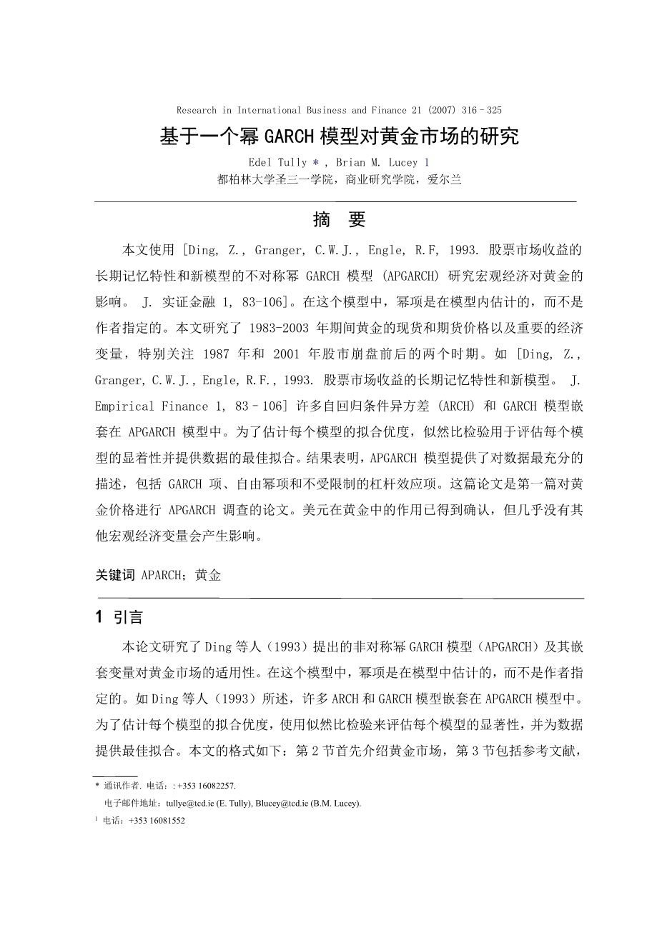 基于一个幂GARCH模型对黄金市场的研究外文翻译资料 2023-04-18 15:10:26 英语原文共 10 页,剩余内容已隐藏,支付完成后下载完整资料 英语译文共 13 页,剩余内容已隐藏,支付完成后下载完整资料 资料编号:[588777],资料为PDF文档或Word文档,PDF文档可免费转换为Word 原文和译文剩余内容已隐藏,您需要先支付 30元 才能查看原文和译文全部内容!立即支付 发小红书推广免费获取该资料资格。点击链接进入获取推广文案即可: Ai一键组稿 | 降AI率 | 降重复率 | 论文一键排版 PREVIOUS NEXT 您可能感兴趣的文章 基于一个幂GARCH模型对黄金市场的研究外文翻译资料 主成分分析教程外文翻译资料 逐步回归的显著性检验外文翻译资料 大数据挖掘:回顾外文翻译资料 DSSAE-BBOA:基于深度学习的气象大数据分析和可视化外文翻译资料 使用G或K点模式空间统计的统计推断外文翻译资料 李代数的扩张结构外文翻译资料 灾民居住偏好转变:以2016年日本熊本地震后益城三波面板数据为例外文翻译资料 影响印尼证券交易所投资的因素-增进对资本市场的了解外文翻译资料 基于JMP的教育数据挖掘外文翻译资料