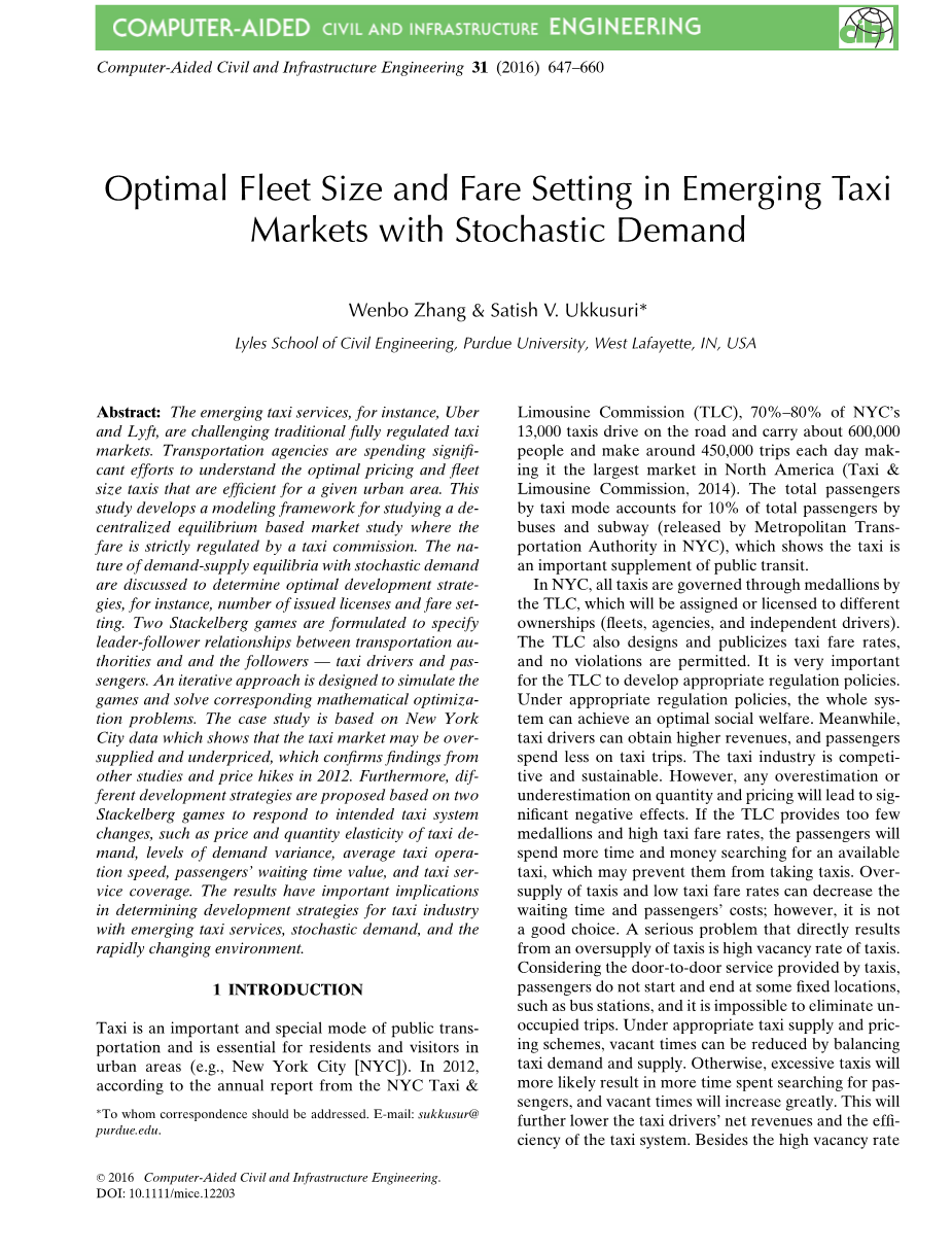 Wenbo Zhangamp;Satish V. Ukkusuri *