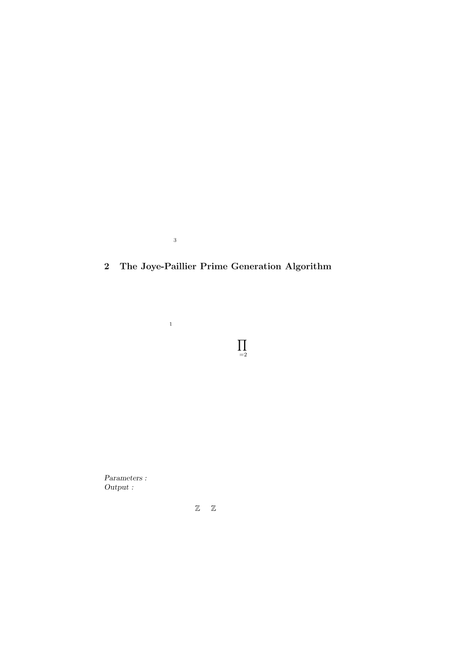 Joye-Paillier算法包括生成一系列与第一个小素数共素数的候选项; 然后对每个候选人应用一个素性测试,直到找到一个素数。在这里,我们专注于更快的变体(来自[中的图3)。一个定义为第一个素数的乘积,不包括,所以是奇数: