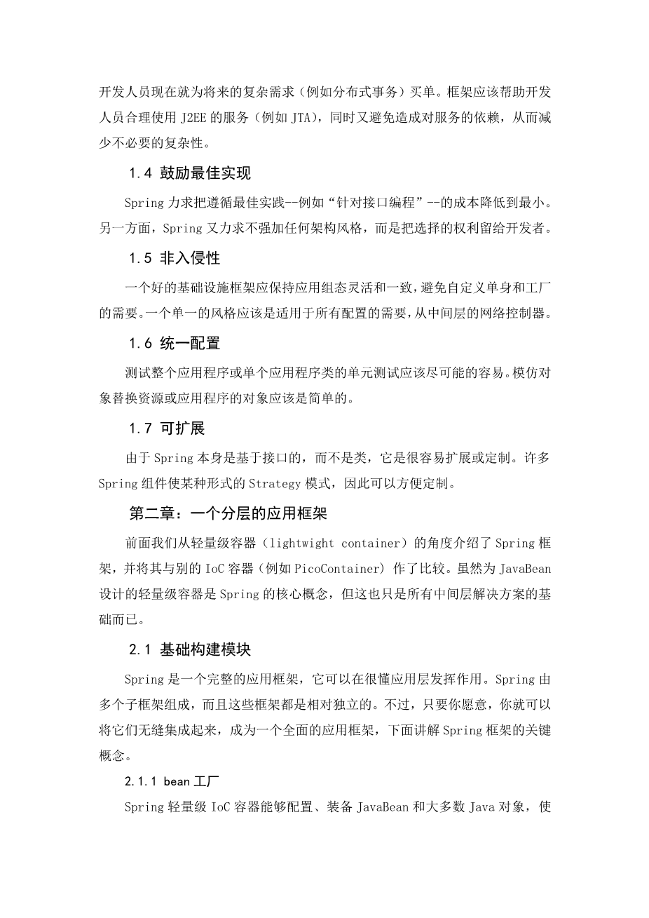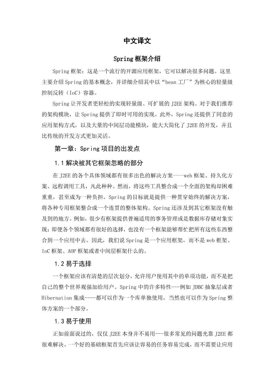 The Spring Framework: a popular open source application framework that addresses many of the issues outlined in this book. This chapter will introduce the basic ideas of Spring and dis-cuss the central “bean factory” lightweight Inversion-of-Control (IoC) container in detail.