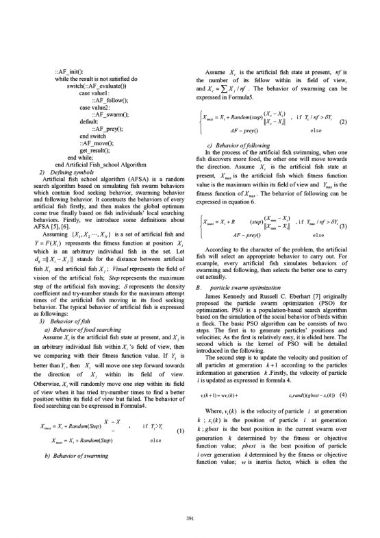 AFSA使用自下而上的开发过程,即首先,我们构建了人工鱼(AF)模型,再由个人从三个典型的行为中选择合适的行为;最后,即可显示出来对于总体或个人来说最优的选择。