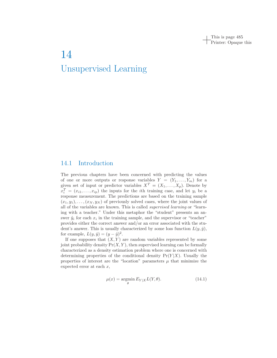 在本章中,我们将探讨无监督学习或“无老师监督的学习”。 在这种情况下,需要一组N个观测值(x1,x2,...,xN)具有联合密度Pr(X)的随机p向量X。 目的是直接推断这种概率密度的性质无需监管者或老师为每个观察结果提供正确答案或错误率。X的维度有时比监督式学习中的维度高得多,有意义的属性通常比简单位置估计更为复杂。 这些因素在一定程度上缓解了以下事实:X代表所有要考虑的变量; 一个不是必需的推断Pr(X)的特性如何变化,以变化为条件另一组变量的值。
