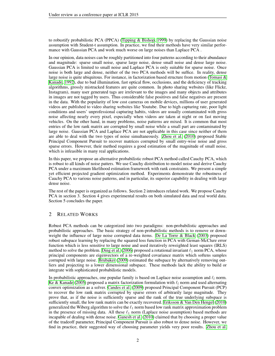 1. 成立了一个额外的术语为PCP模型考虑到小密集的噪音,但仍然无法处理大量密集的噪声。(2010)制定了类似的问题。(2009)通过施加确定完全损坏的点;2范数对噪声矩阵。他们的方法假定的低秩矩阵的列级的腐败和不适用于入门级的腐败。