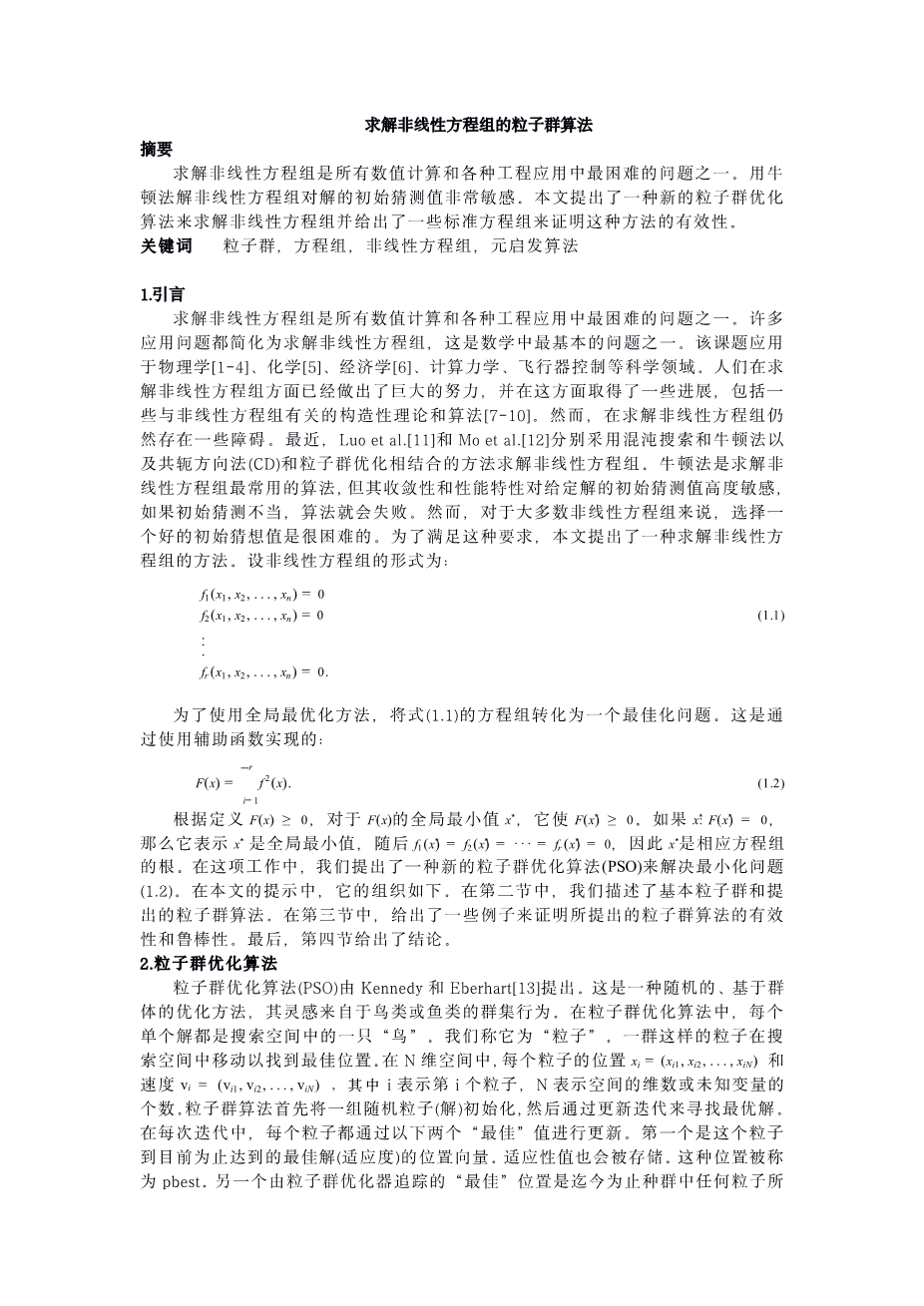 求解非线性方程组的粒子群算法外文翻译资料 2023-03-03 22:38:14 英语原文共 11 页,剩余内容已隐藏,支付完成后下载完整资料 英语译文共 11 页,剩余内容已隐藏,支付完成后下载完整资料 资料编号:[405350],资料为PDF文档或Word文档,PDF文档可免费转换为Word 原文和译文剩余内容已隐藏,您需要先支付 30元 才能查看原文和译文全部内容!立即支付 发小红书推广免费获取该资料资格。点击链接进入获取推广文案即可: Ai一键组稿 | 降AI率 | 降重复率 | 论文一键排版 PREVIOUS NEXT 您可能感兴趣的文章 在线办公系统的设计与实现外文翻译资料 正则表达式模式匹配外文翻译资料 层适应网格一致收敛的充分条件外文翻译资料 深度残差网络中的恒等映射外文翻译资料 固定和灵活汇率下国际调整的货币动态外文翻译资料 政策选择的本质外文翻译资料 大数据在海洋观测中的应用:机遇与挑战外文翻译资料 基于遗传算法的贝叶斯多核学习方法相关向量机外文翻译资料 数据库管理系统外文翻译资料 数据仓库外文翻译资料