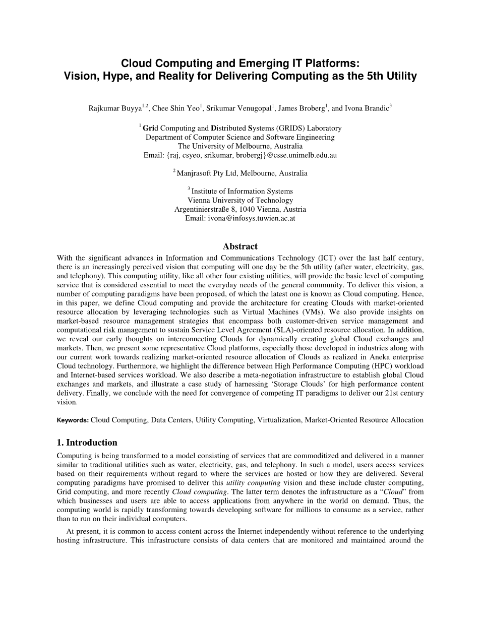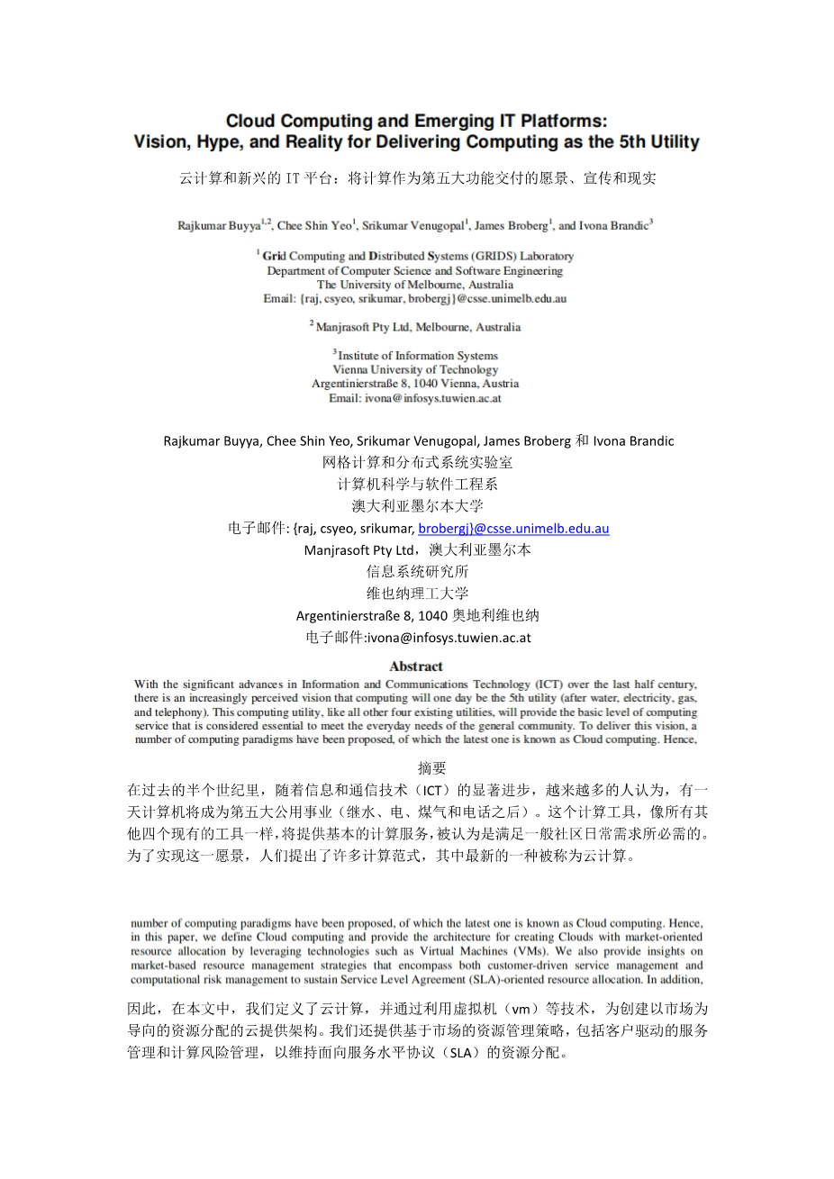 云计算和新兴的IT平台:将计算作为第五大功能交付的愿景、宣传和现实外文翻译资料