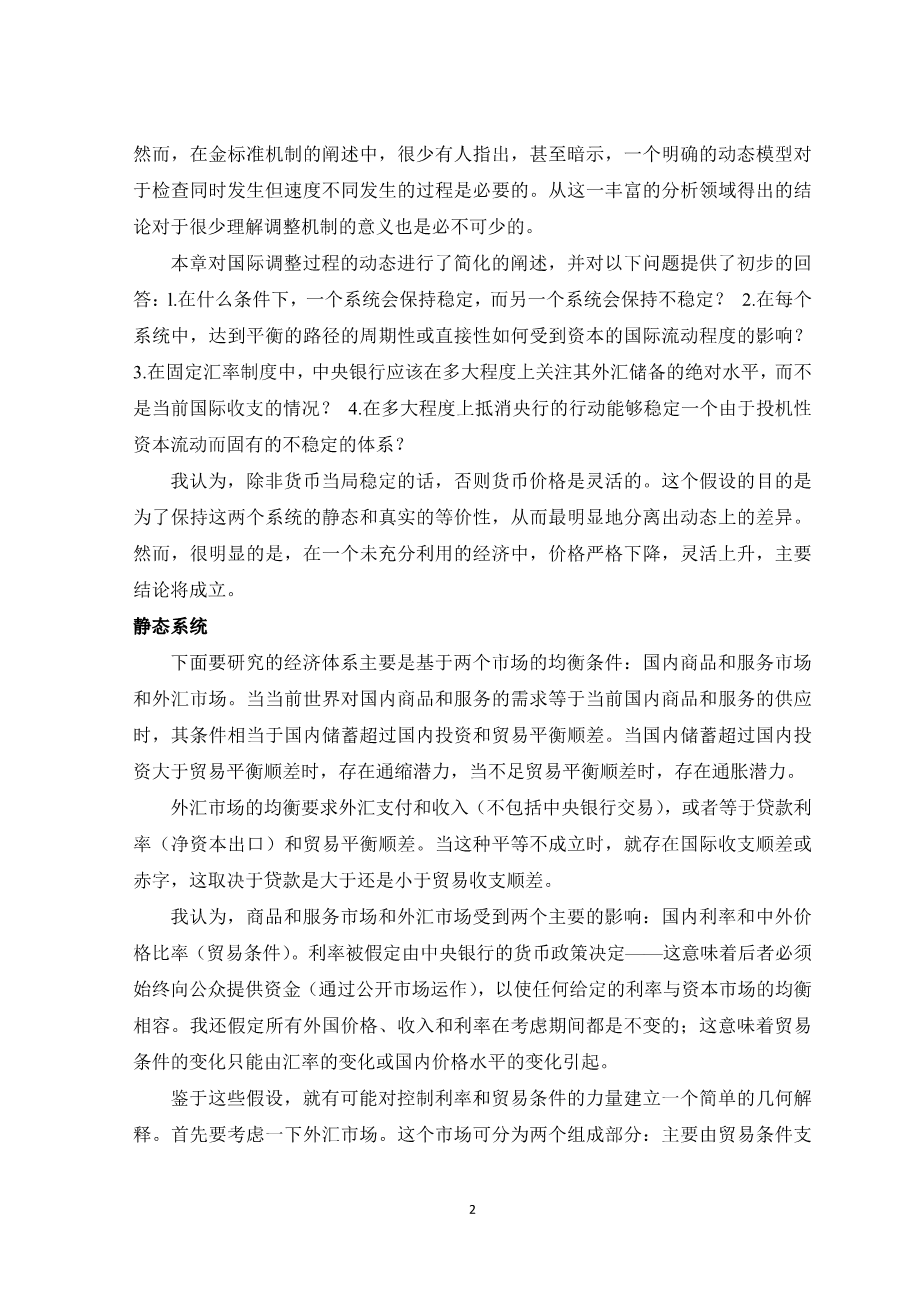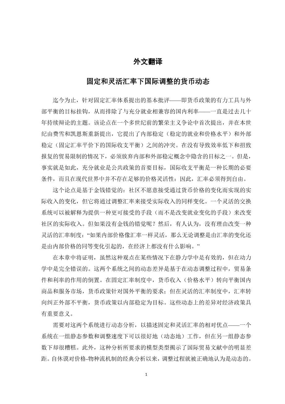 固定和灵活汇率下国际调整的货币动态外文翻译资料