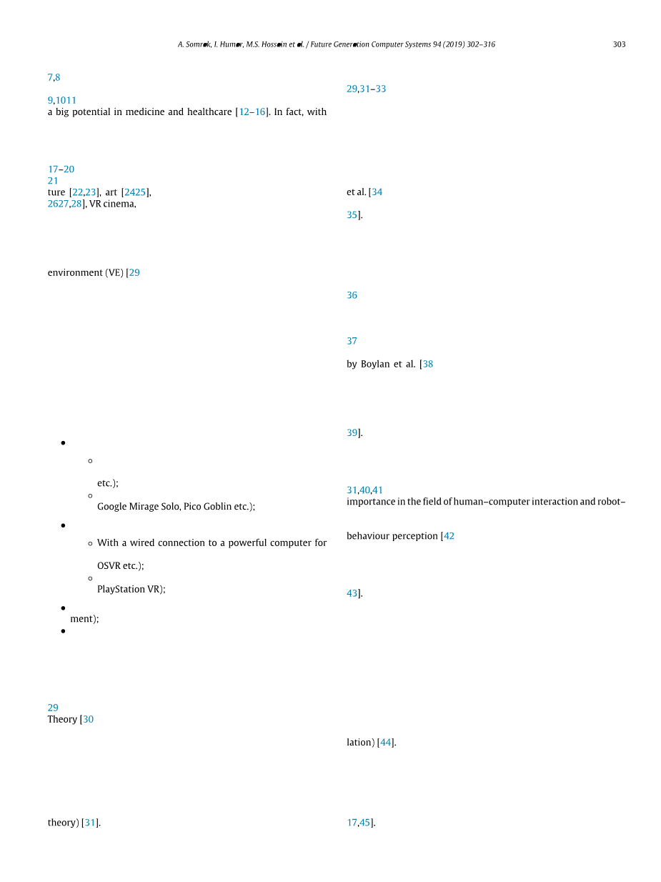 消费者市场的 VR 目前主要用于游戏和娱乐(观看360视频和直播活动),但范围非常广泛,适合在工业和商业环境中使用。VR用于训练和模拟 [5,6],以增加用户在一个人的故事中所感受到的同理心,并从沉浸式新闻中发展出来 [7,8]。VR是工业4.0的一部分,它主要用于原型的开发 [9,10],它是一个很好的教育工具[11],它在医学和医疗保健方面具有很大的潜力[12,13,14,15,16]。事实上,随着医疗和计算机技术的快速发展,医疗系统正面临着使用这些技术的重大变化和改进(VR、认知计算、大数据、机器学习、深度学习、数据可视化、可穿戴设备、物联网、智能服装和其他) [17,18,19,20]。其他使用VR的领域还有:营销[21],房地产和建筑[22,23],艺术[24],社交和远程协作[25],旅游[26],可视化大量数据[27,28],VR电影等。