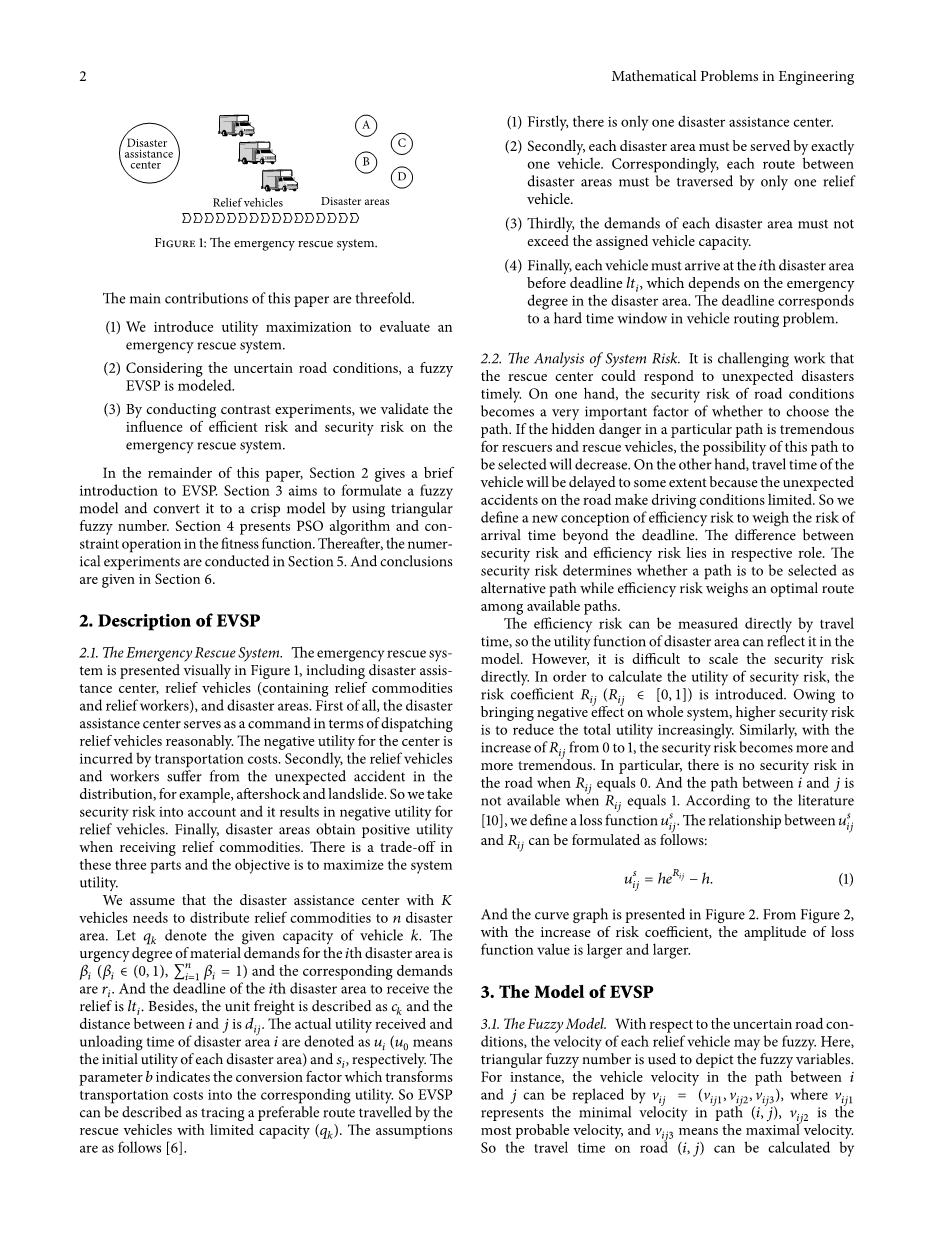 我们假设灾难援助中心车辆需要向灾区分发救援物资区域。让K表示车辆的给定容量。这灾区物质需求的紧急程度是以及相应的要求是。和第i个灾区接收的最后期限的是。此外,单位运费被描述为。i和j之间的距离是。实际收到的公用事业i灾区卸载时间表示为(表示每个灾区的初始效用)和。这参数指示转换的转换因子运输成本进入相应的公用事业。所以EVSP可以描述为跟踪容量有限的救援车辆()。假设[6]工程中的数学问题。
