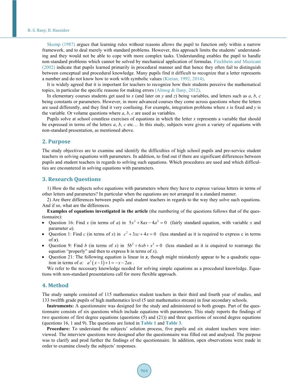 我们选择在这项研究中探索三个二阶方程。 在每个等式中,都需要由另一个表示给定的字母。 错误分为两种类型:计算错误和由于与不熟悉的字母使用有关的混淆导致的错误:忽略字母,发现字母的错误字母和圆形表达。 (例子将被引用表3:问题16,1和9)。