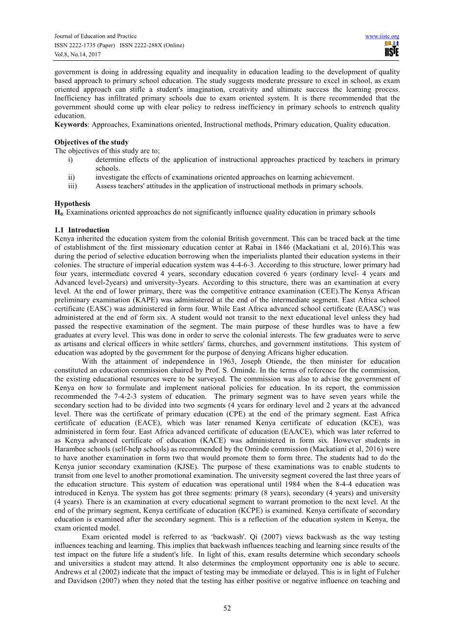 肯尼亚小学教育中应试教育对素质教育的影响外文翻译资料