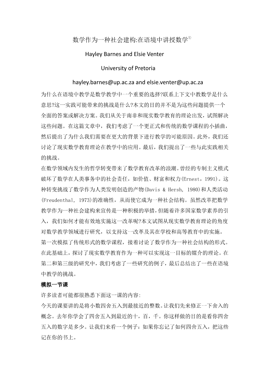 The philosophical shift that has occurred within the domain of mathematics has brought with it a wave of reform in mathematics education. The former absolutist paradigm that dominated undermined the social responsibility of mathematics in human affairs such as value, wealth and power (Ernest, 1991). The shift has challenged the infallibility of mathematics and acknowledged it as a product of human inventiveness (Davis amp; Hersh, 1980) and a human activity (Freudenthal, 1973), thus making it a social construct. While the reform propagating the teaching of mathematics as a social construct is a positive move, along with the introduction of mathematical literacy in many countries, how can we effectively implement this reform? This paper seeks to examine the area of teaching mathematics in context (specifically in relation to the theory of Realistic Mathematics Education) to support this reform and the implementation thereof in school and tertiary education.