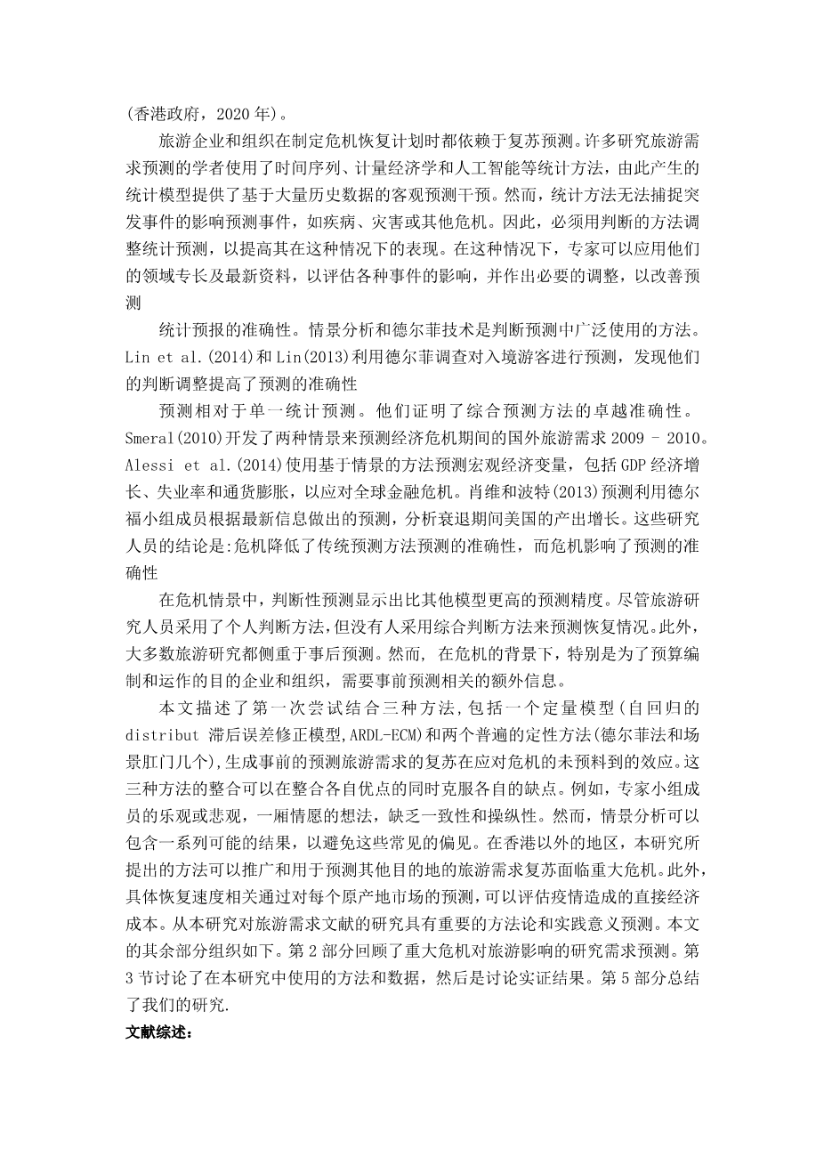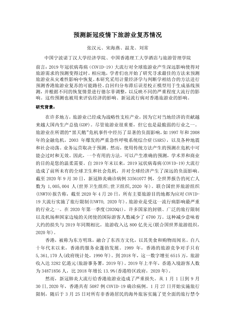 预测新冠疫情下旅游业复苏情况外文翻译资料