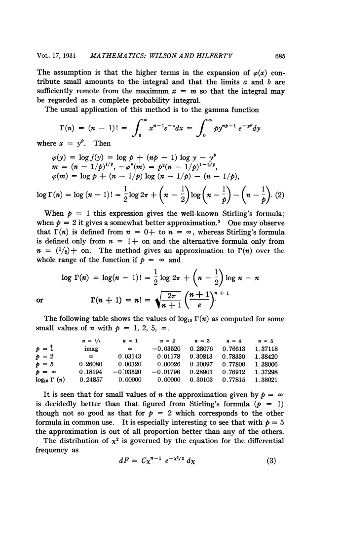 可以看出,对于较小的n值,给出的近似值明显优于从斯特林公式(p=1)得出的近似值,但不如p=2给出的近似值,后者对应于常用的另一个公式。特别有趣的是,当p=5时,近似值比其他任何一个都好。分布由微分频率方程控制,例如