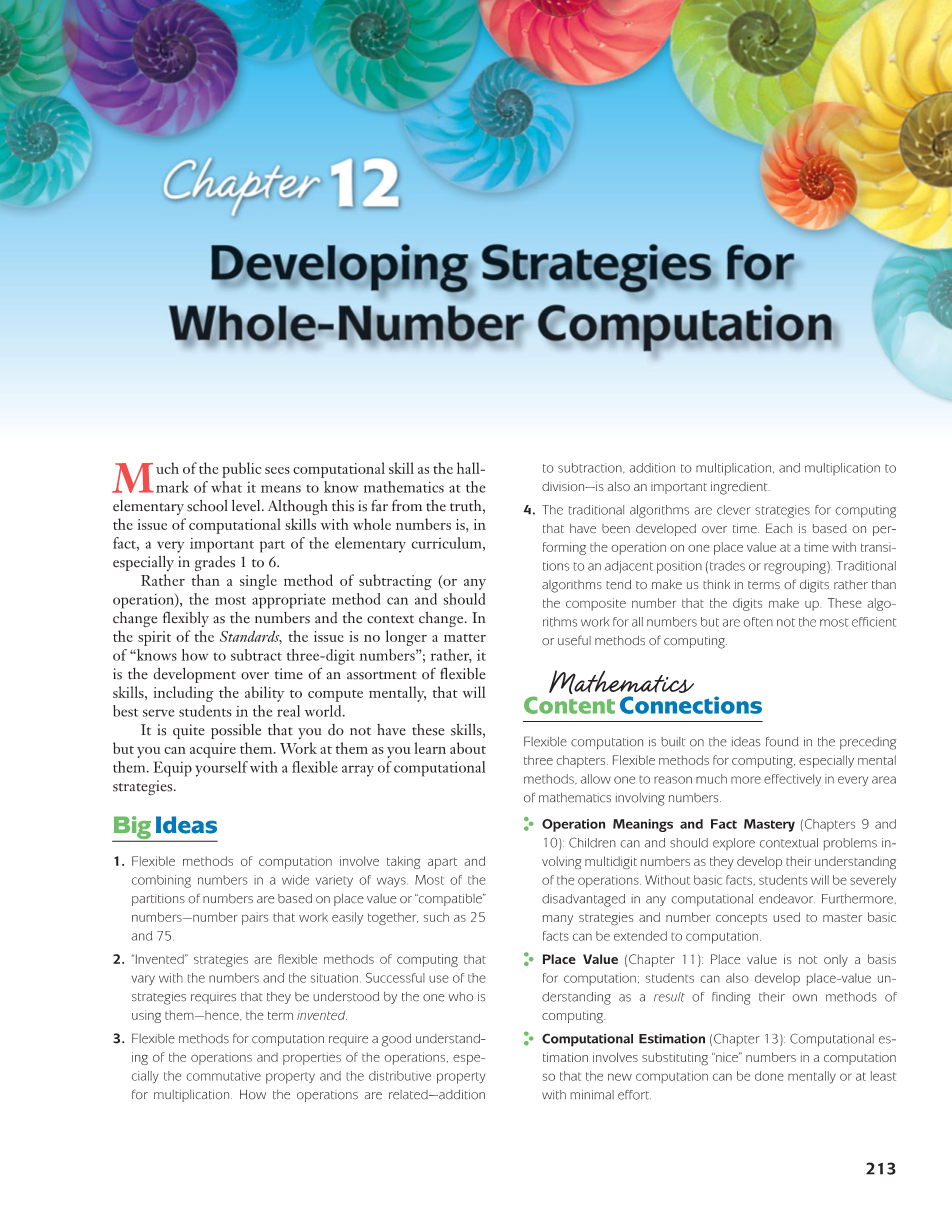 灵活计算是建立在前三章的思想基础之上的。灵活的计算方法,特别是心理计算方法,允许人们在每一个涉及数字的数学领域中更有效地推理。