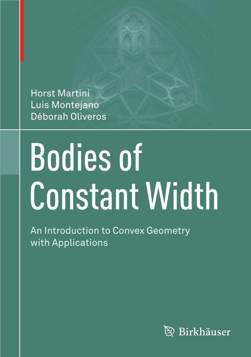 大多数关于凸性的书籍和解释文章都在一章或一节中提到等宽的体。本书讨论标准凸性的最经典和最有代表性的结果和技术,包括混合体积、球面积分、柯西公式和其他。将近一百年后的1875年,Reuleaux出版了一本关于运动学的书,他在书中提到了等宽曲线并举例说明。后来他提出了一种可以被认为是最简单的等宽曲线的构造方法,它不是一个圆,今天以他的名字命名。