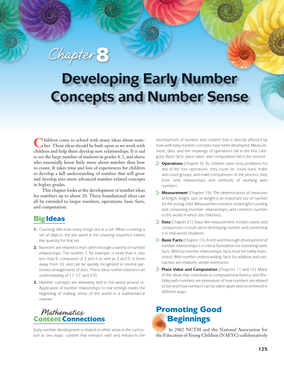 这一章着眼于多达20个的数字思想的发展。这些基本思想都可以扩展到更大的数、运算、基本事实和计算。