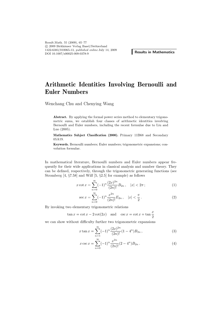 Vol. 55(2009)算术恒等式包括伯努利和欧拉数为77
