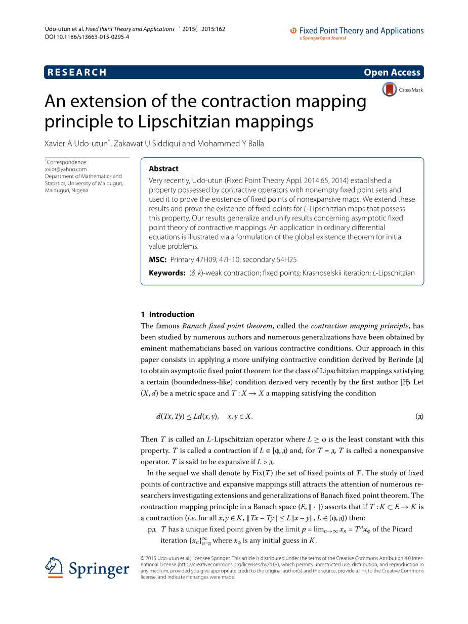关于扩张变换的不动点的研究包括Goebel和Kirk[5]在的一致L-Lipschitzian映射上的工作. Lipschitz [6]改进了对的估计为.