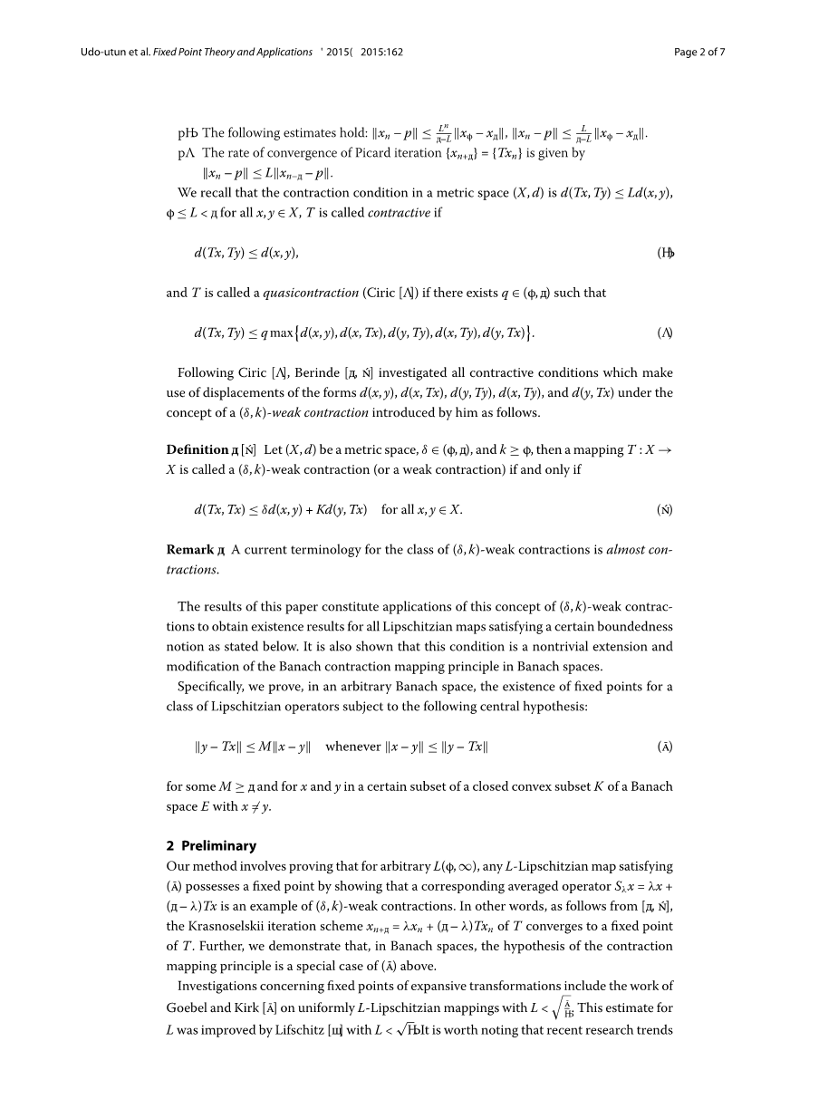 的映射. 则称TL-Lipschitzian算子,其中是具有此属性的最小常数. 如果,则T称为压缩的,对于,T称为非扩张算子. 如果,则称T为扩张的.