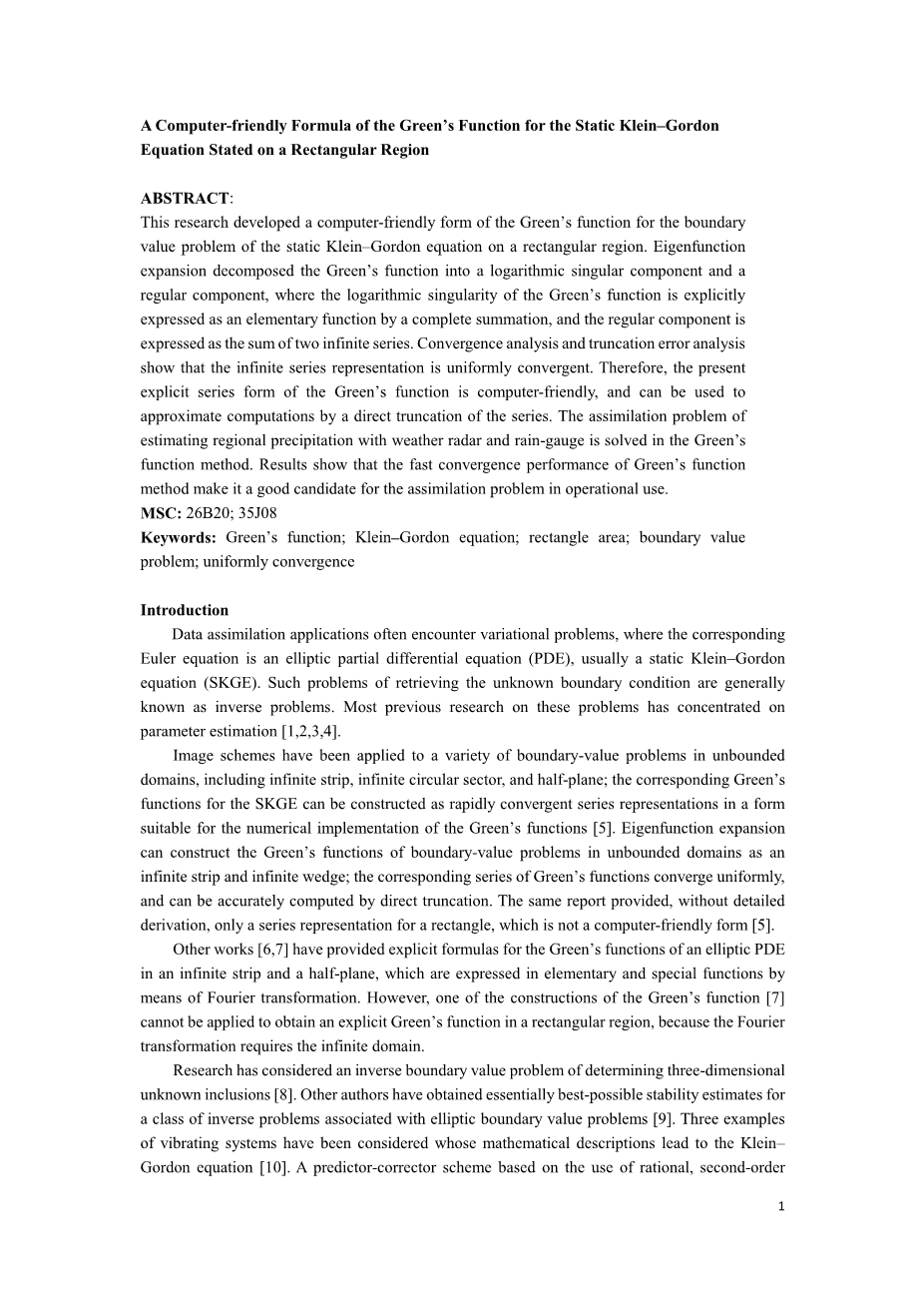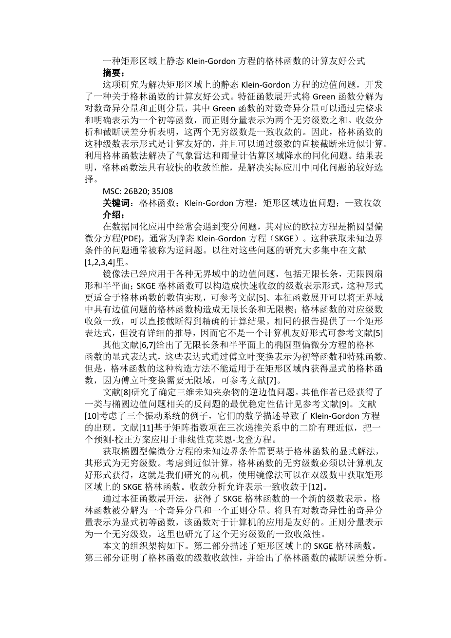 种矩形区域上静态Klein-Gordon方程的格林函数的计算友好公式外文翻译资料