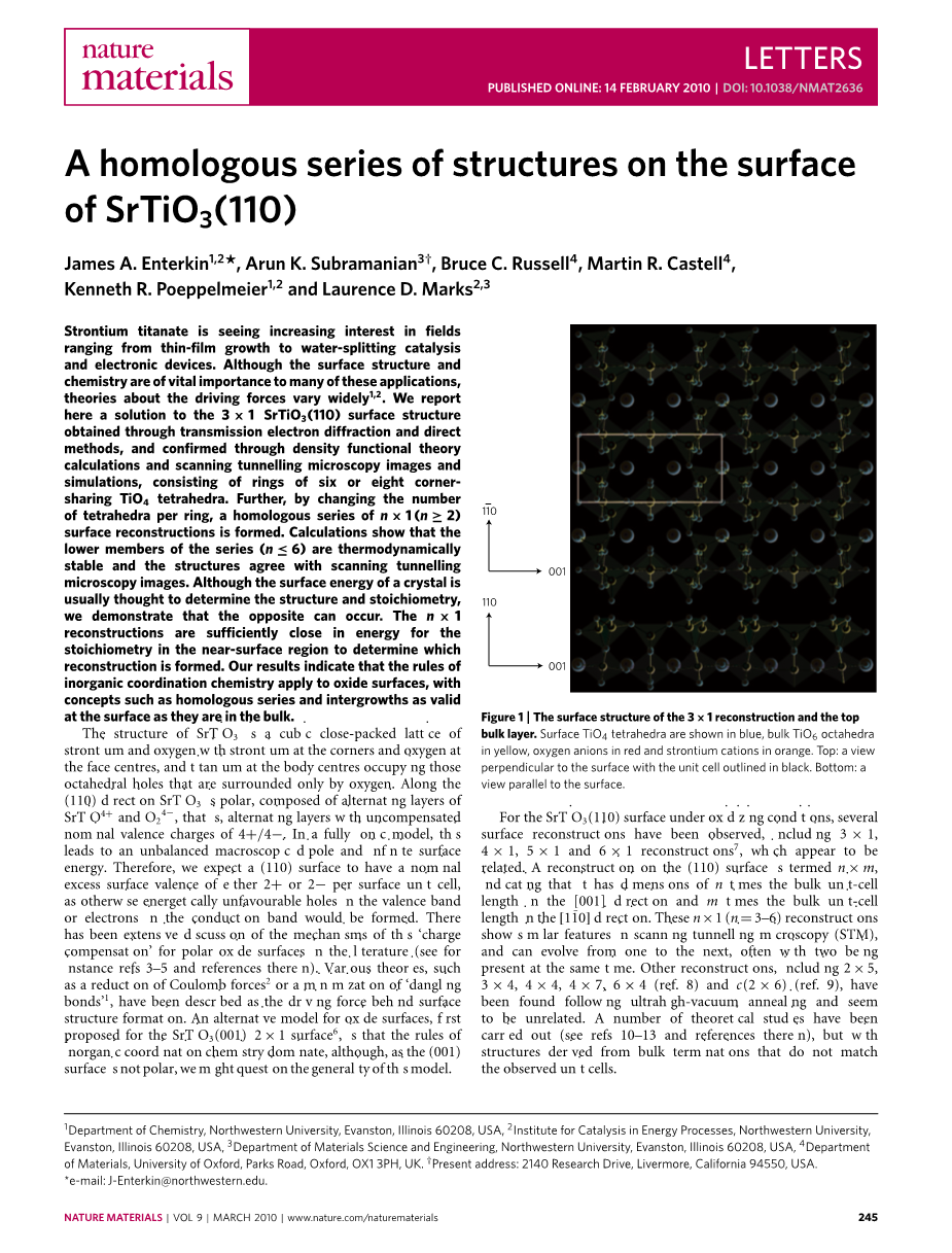James A. Enterkin, Arun K. Subramanian, Bruce C. Russell, Martin R. Castell, Kenneth R. Poeppelmeier and Laurence D. Marks