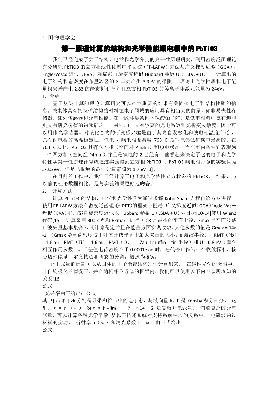 PbTiO3的光学性质计算外文翻译资料 2022-05-06 21:05:50 英语原文共 10 页,剩余内容已隐藏,支付完成后下载完整资料 英语译文共 4 页,剩余内容已隐藏,支付完成后下载完整资料资料编号:[462561],资料为PDF文档或Word文档,PDF文档可免费转换为Word 原文和译文剩余内容已隐藏,您需要先支付 30元 才能查看原文和译文全部内容!立即支付 发小红书推广免费获取该资料资格。点击链接进入获取推广文案即可: Ai一键组稿 | 降AI率 | 降重复率 | 论文一键排版 PREVIOUS NEXT 您可能感兴趣的文章 在裸露的SrTiO3表面二维电子液的产生和调控外文翻译资料 (111)界面上的二维超导性和各向异性传输在外文翻译资料 MoS₂中的一维金属边缘态外文翻译资料 运用量子纠缠加强量子电池系统的能量提取外文翻译资料 GeSe 纳米片和纳米带的可调电子结构外文翻译资料 铁电隧道结中的隧穿异常霍尔效应外文翻译资料 Zn0纳米线表面激振子发射的动力学外文翻译资料 测量碳纳米弹簧的压缩量外文翻译资料 由自绕式纤维执行器驱动的可调节自振系统外文翻译资料 自接触杆的非线性动态缠绕外文翻译资料