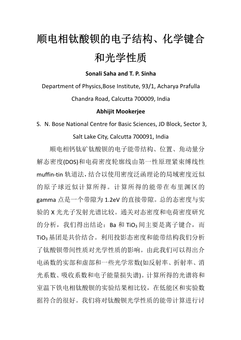 钛酸钡的光学性质计算外文翻译资料 2022-05-06 21:05:51 英语原文共 7 页,剩余内容已隐藏,支付完成后下载完整资料 英语译文共 17 页,剩余内容已隐藏,支付完成后下载完整资料资料编号:[462557],资料为PDF文档或Word文档,PDF文档可免费转换为Word 原文和译文剩余内容已隐藏,您需要先支付 30元 才能查看原文和译文全部内容!立即支付 发小红书推广免费获取该资料资格。点击链接进入获取推广文案即可: Ai一键组稿 | 降AI率 | 降重复率 | 论文一键排版 PREVIOUS NEXT 您可能感兴趣的文章 在裸露的SrTiO3表面二维电子液的产生和调控外文翻译资料 (111)界面上的二维超导性和各向异性传输在外文翻译资料 MoS₂中的一维金属边缘态外文翻译资料 运用量子纠缠加强量子电池系统的能量提取外文翻译资料 GeSe 纳米片和纳米带的可调电子结构外文翻译资料 铁电隧道结中的隧穿异常霍尔效应外文翻译资料 Zn0纳米线表面激振子发射的动力学外文翻译资料 测量碳纳米弹簧的压缩量外文翻译资料 由自绕式纤维执行器驱动的可调节自振系统外文翻译资料 自接触杆的非线性动态缠绕外文翻译资料