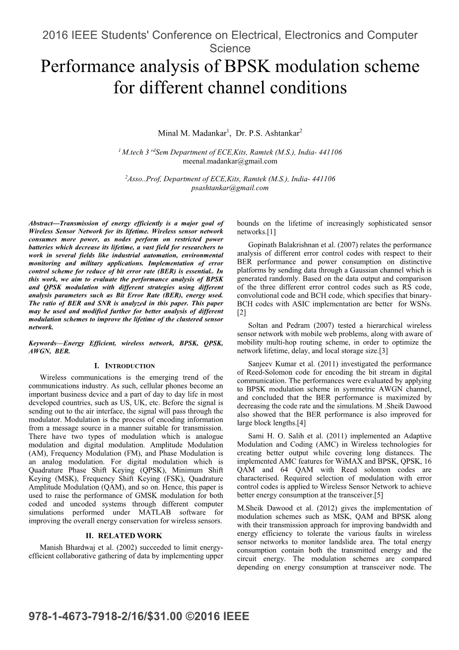 关键词—有效节能,无线网络,BPSK,QPSK,AWGN,BER。