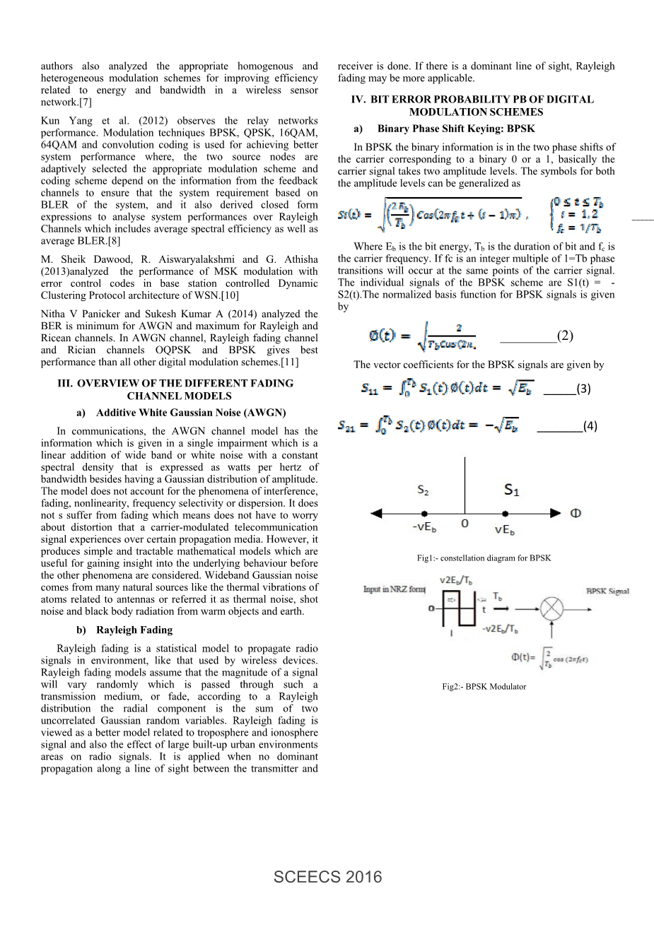 Nitha V Panicker和Sukesh Kumar A(2014)分析了AWGN的最小BER和Rayleigh和Ricean信道的最大BER。在AWGN信道中,瑞利衰落信道和Rician信道OQPSK和BPSK的性能优于所有其他的数字调制方案。