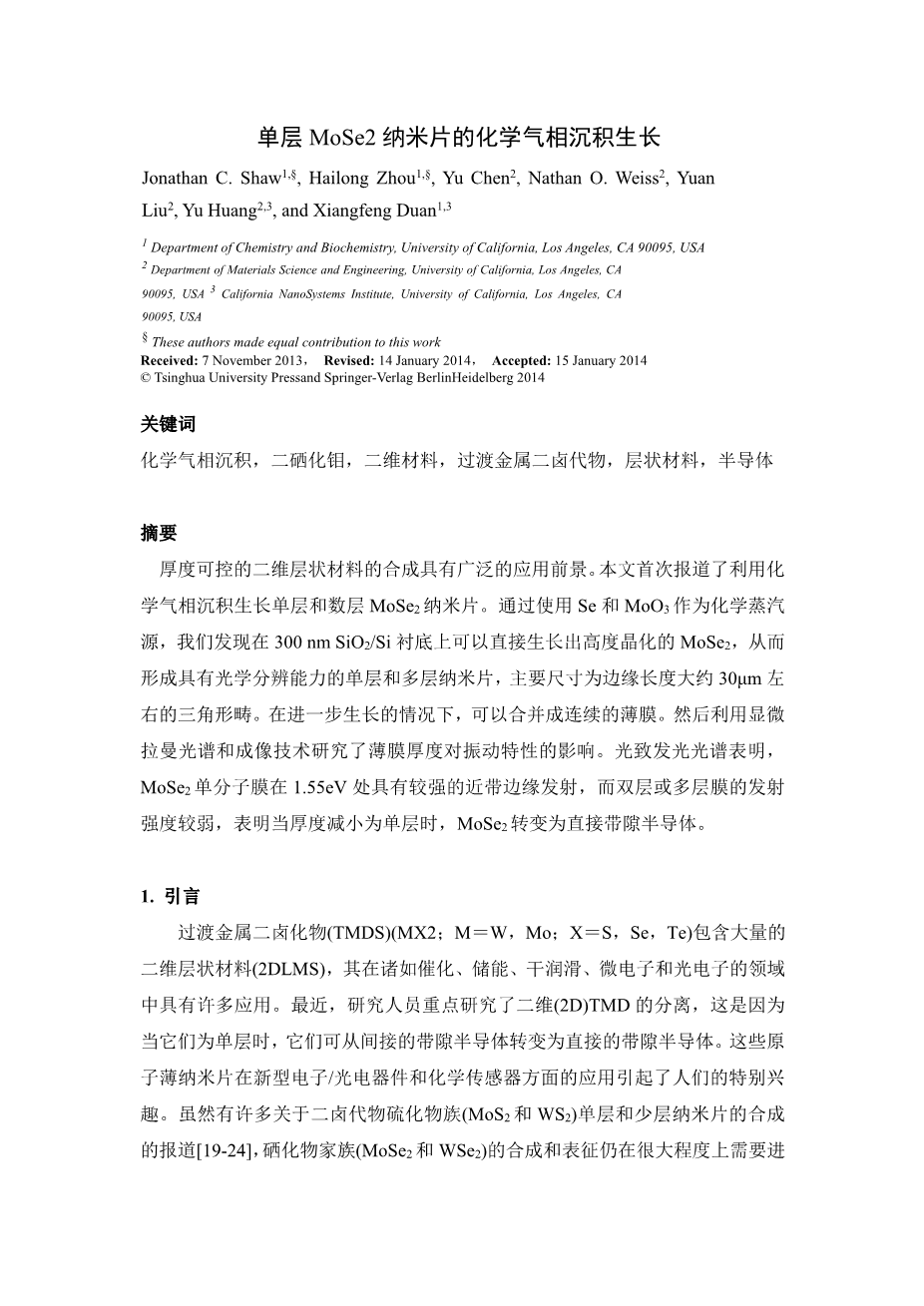 热蒸发方法制备硒化钼薄膜研究外文翻译资料 2022-06-04 23:12:24 英语原文共 7 页,剩余内容已隐藏,支付完成后下载完整资料 英语译文共 11 页,剩余内容已隐藏,支付完成后下载完整资料资料编号:[462453],资料为PDF文档或Word文档,PDF文档可免费转换为Word 原文和译文剩余内容已隐藏,您需要先支付 30元 才能查看原文和译文全部内容!立即支付 发小红书推广免费获取该资料资格。点击链接进入获取推广文案即可: Ai一键组稿 | 降AI率 | 降重复率 | 论文一键排版 PREVIOUS NEXT 您可能感兴趣的文章 在裸露的SrTiO3表面二维电子液的产生和调控外文翻译资料 (111)界面上的二维超导性和各向异性传输在外文翻译资料 MoS₂中的一维金属边缘态外文翻译资料 运用量子纠缠加强量子电池系统的能量提取外文翻译资料 GeSe 纳米片和纳米带的可调电子结构外文翻译资料 铁电隧道结中的隧穿异常霍尔效应外文翻译资料 Zn0纳米线表面激振子发射的动力学外文翻译资料 测量碳纳米弹簧的压缩量外文翻译资料 由自绕式纤维执行器驱动的可调节自振系统外文翻译资料 自接触杆的非线性动态缠绕外文翻译资料