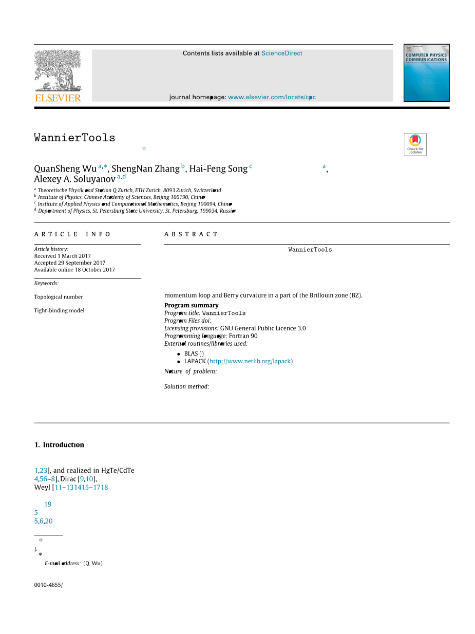 WannierTools:一种用于新型拓扑材料的开源软件包