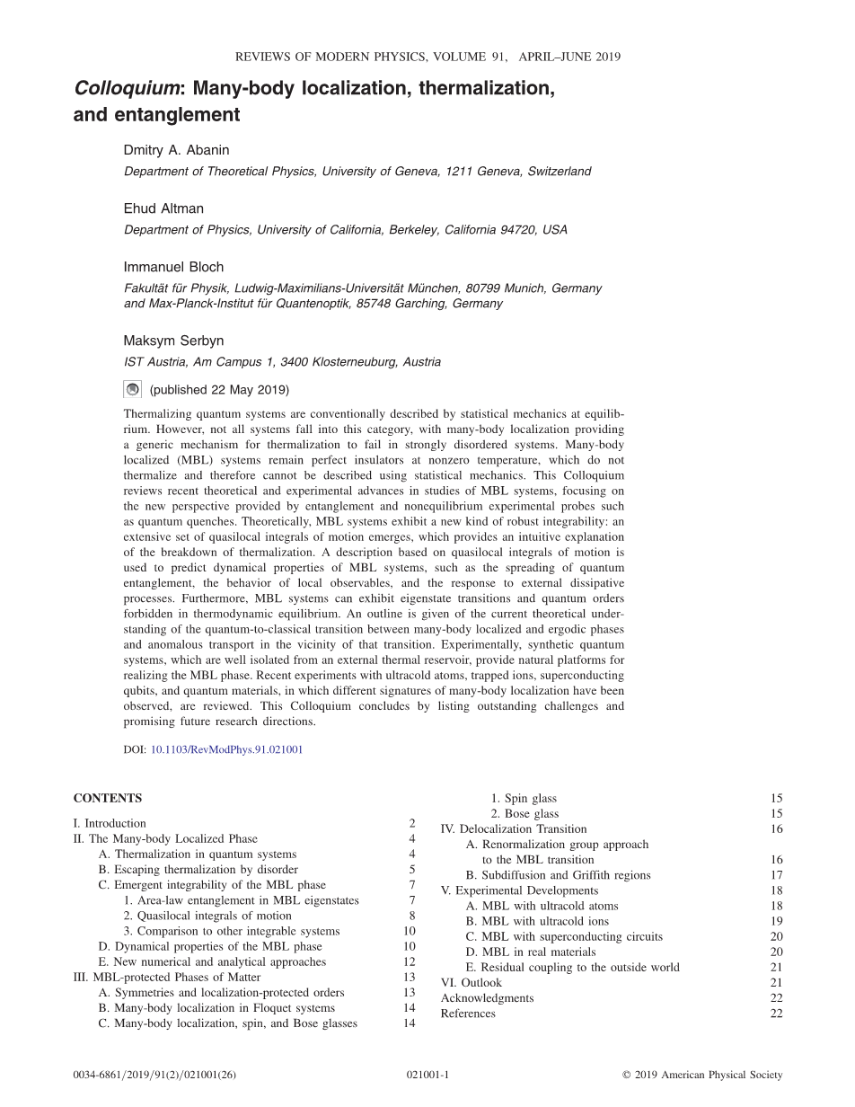 座谈会:多体局域化、热化、纠缠外文翻译资料 2022-08-12 16:02:42 英语原文共 26 页,剩余内容已隐藏,支付完成后下载完整资料 英语译文共 5 页,剩余内容已隐藏,支付完成后下载完整资料 资料编号:[236723],资料为PDF文档或Word文档,PDF文档可免费转换为Word 原文和译文剩余内容已隐藏,您需要先支付 30元 才能查看原文和译文全部内容!立即支付 发小红书推广免费获取该资料资格。点击链接进入获取推广文案即可: Ai一键组稿 | 降AI率 | 降重复率 | 论文一键排版 PREVIOUS NEXT 您可能感兴趣的文章 在裸露的SrTiO3表面二维电子液的产生和调控外文翻译资料 (111)界面上的二维超导性和各向异性传输在外文翻译资料 MoS₂中的一维金属边缘态外文翻译资料 运用量子纠缠加强量子电池系统的能量提取外文翻译资料 GeSe 纳米片和纳米带的可调电子结构外文翻译资料 铁电隧道结中的隧穿异常霍尔效应外文翻译资料 Zn0纳米线表面激振子发射的动力学外文翻译资料 测量碳纳米弹簧的压缩量外文翻译资料 由自绕式纤维执行器驱动的可调节自振系统外文翻译资料 自接触杆的非线性动态缠绕外文翻译资料