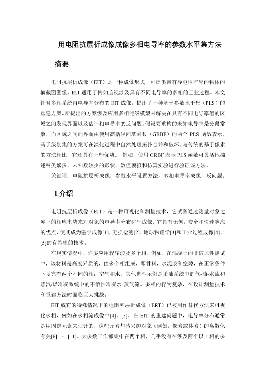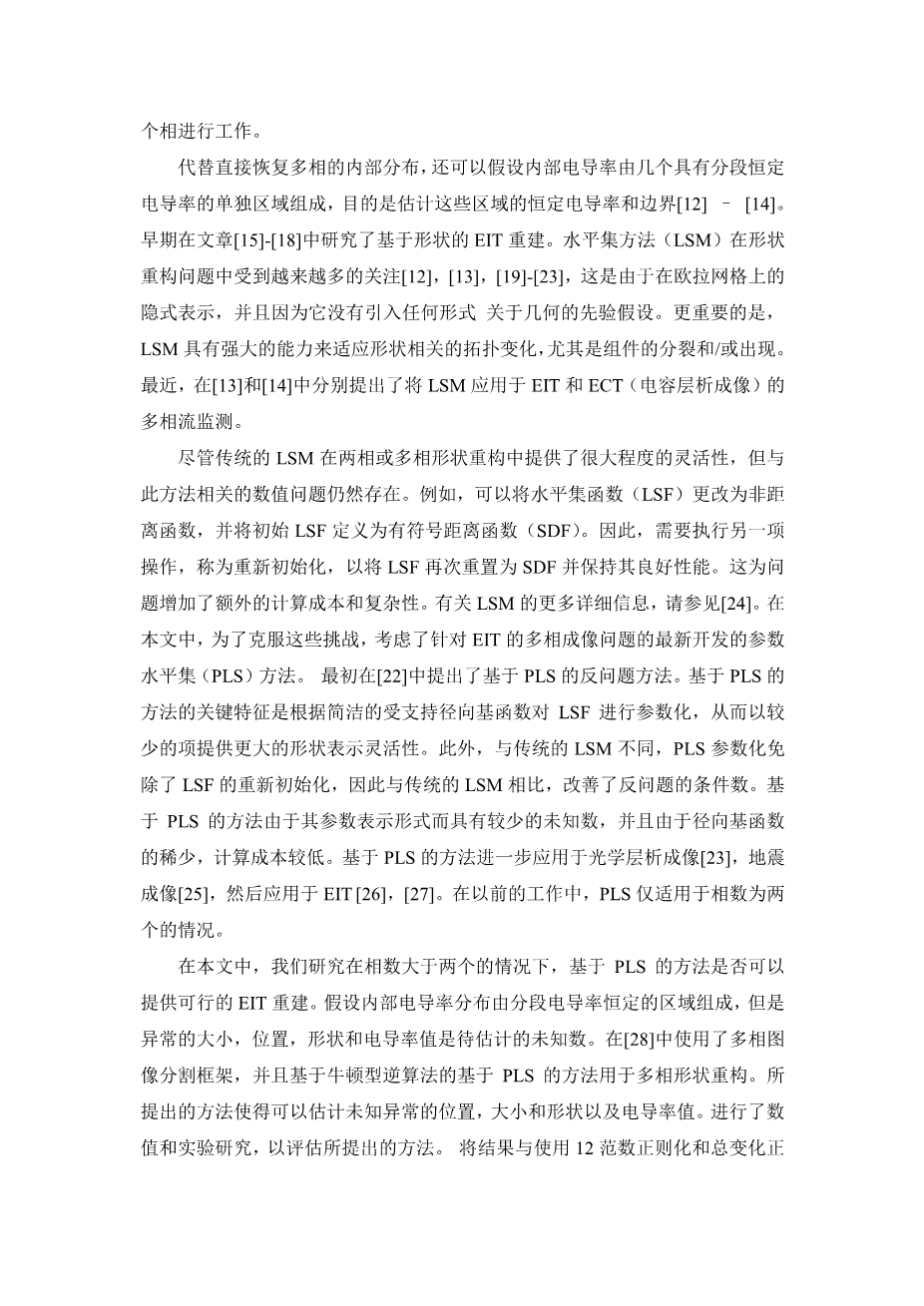 用电阻抗层析成像成像多相电导率的参数水平集方法外文翻译资料