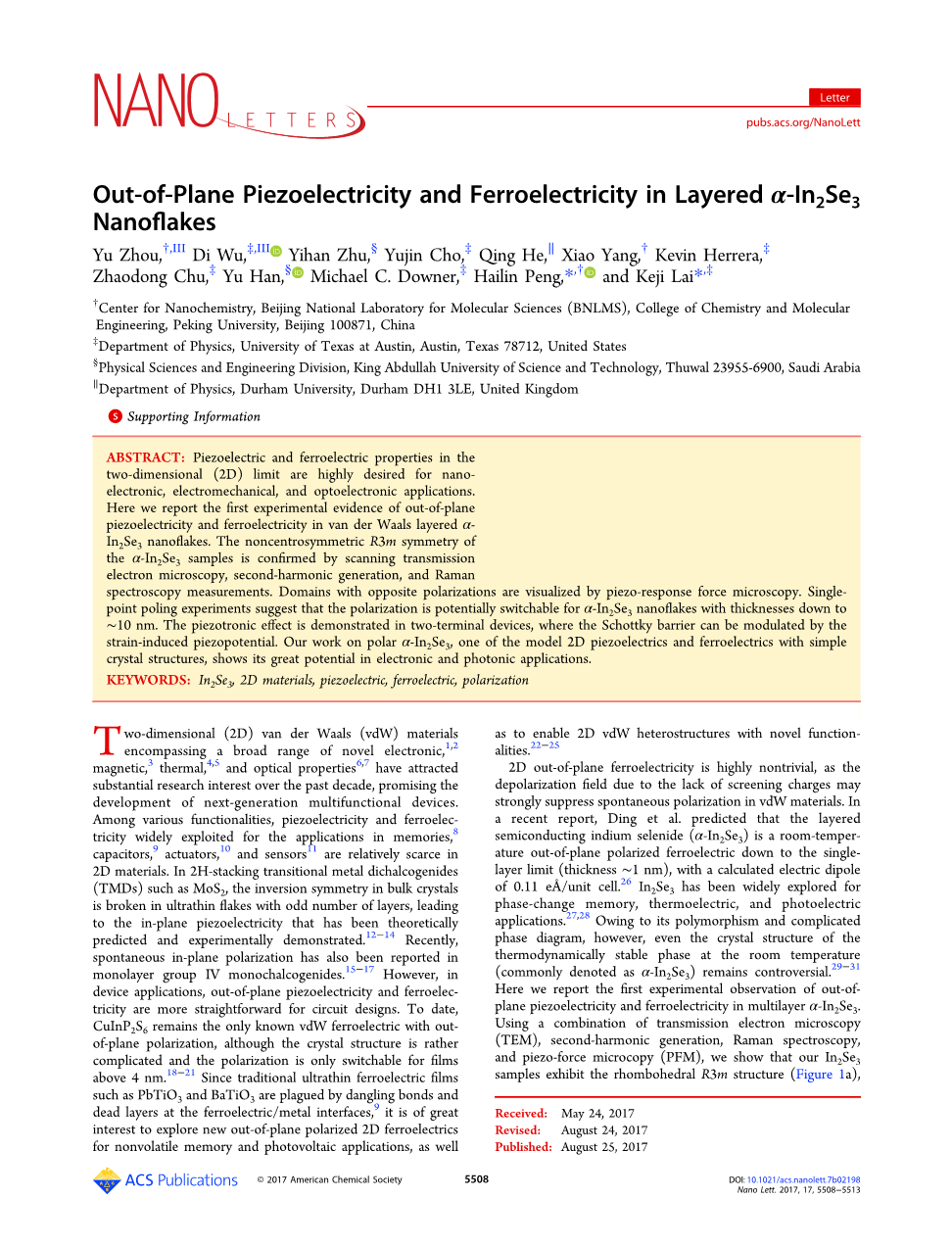层状alpha;-In2Se3纳米薄片的面外压电性和铁电性