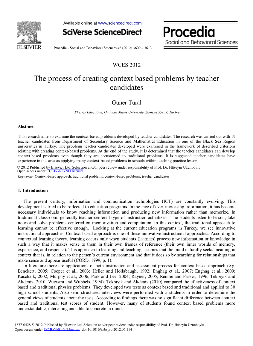 本世纪,信息技术、通信技术的不断发展,推动着教育事业的蓬勃发展。面对不断增长的知识信息,相比于死记硬背,学习并创造新的知识十分必要。传统的课堂中,常常采用以教师为中心的教学模式。学生上课听讲,做笔记,通过记忆和计算来解决问题。在这种情况下,传统的学习方法有效性较差。就土耳其目前的教育来看,我们发现了创新的教学方法。情境教学法就是其中一种创新的教学方法。根据上下文学习理论,只有当学生(学习者)处理新信息或知识的方式在他们自己的参考框架中(他们自己的记忆、经验和反应的内心世界)有意义时,学习才会发生。这种学习和教学方法假设大脑主动在情境中寻找意义,这与人当前的环境有关,大脑通过发现看起来有用的关系来寻找意义(CORD, 1999, p. 1)。
