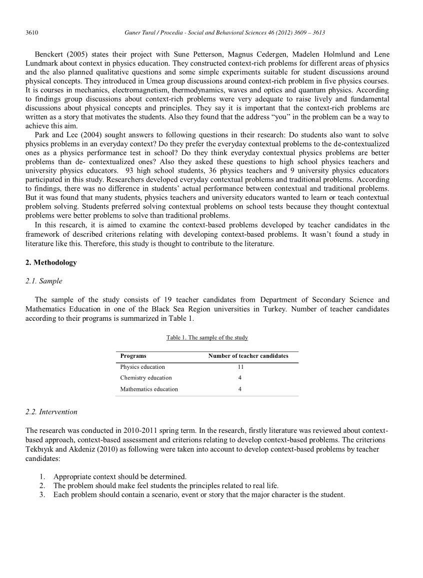 本研究于2010-2011春季学期进行。在本研究中,首先回顾了情境方法、情境评估以及与发展问题情境相关的标准。教师候选人参考Tekbivik和Akdeniz(2010)的标准,提出了问题情境。