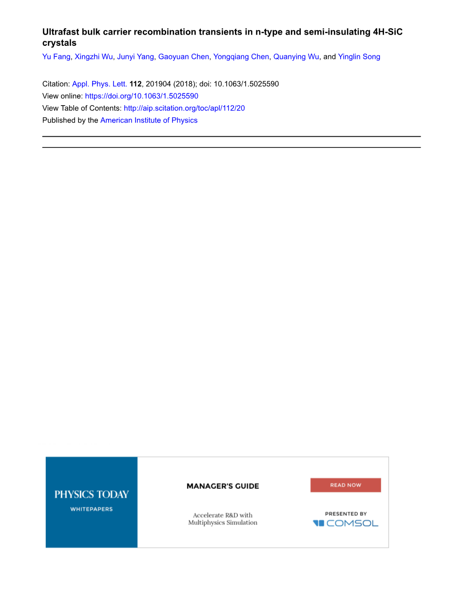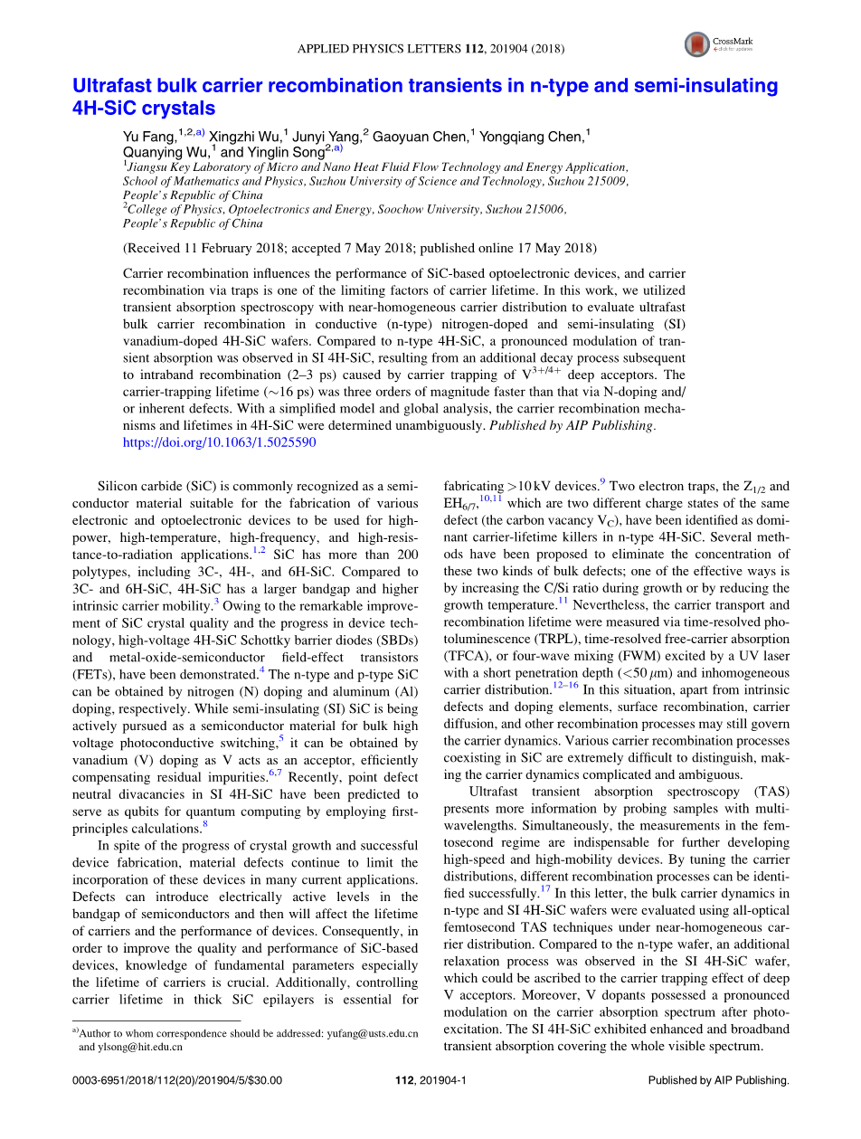 n型和半绝缘4H-SiC晶体的超快体载流子复合瞬态动力学
