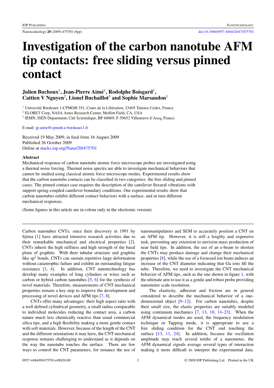 为了避免这种复杂性,我们进行了热噪声测量。热噪声悬臂振幅通常在埃左右或小于埃,因此可以绕过大振幅的平均。弱力使人们可以通过碳纳米管与表面之间的固定接触来探测碳纳米管的力学行为。这篇论文结构如下:第一部分致力于描述方法,介绍了热噪声实验,描述了热噪声谱的物理内容时间提示接触表面;第二部分介绍了实验结果;第三段是专门讨论,特别是关注理论预测和实验结果之间的比较。