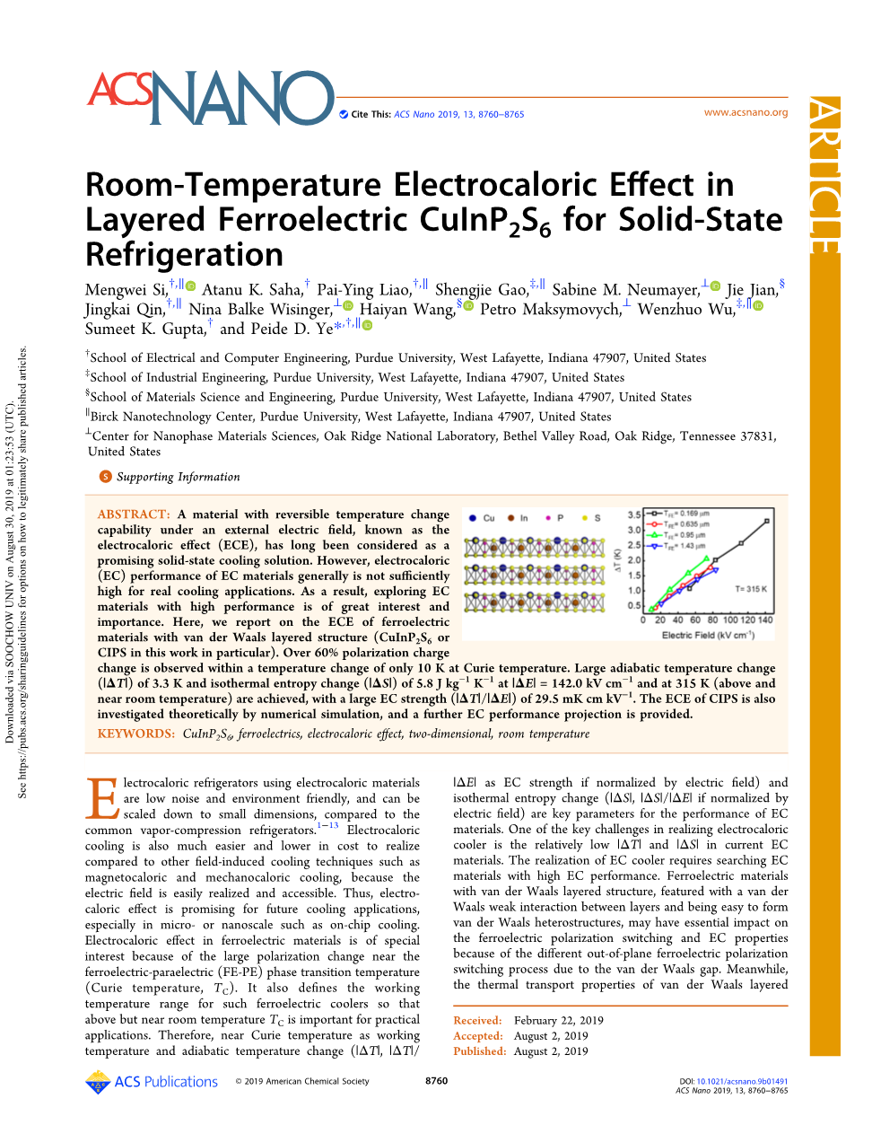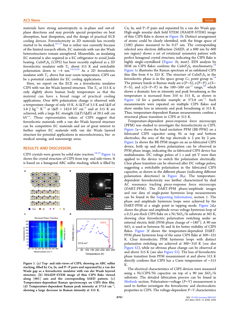 关键词:CuInP2S6,铁电体,电热效应,二维,室温