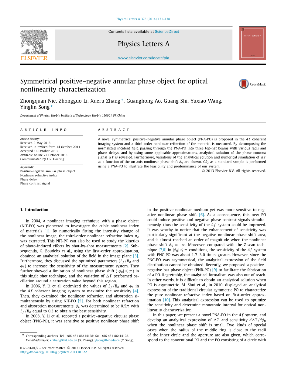 关键词:正负环相位对象,非线性折射率,相位延迟,相位对比信号