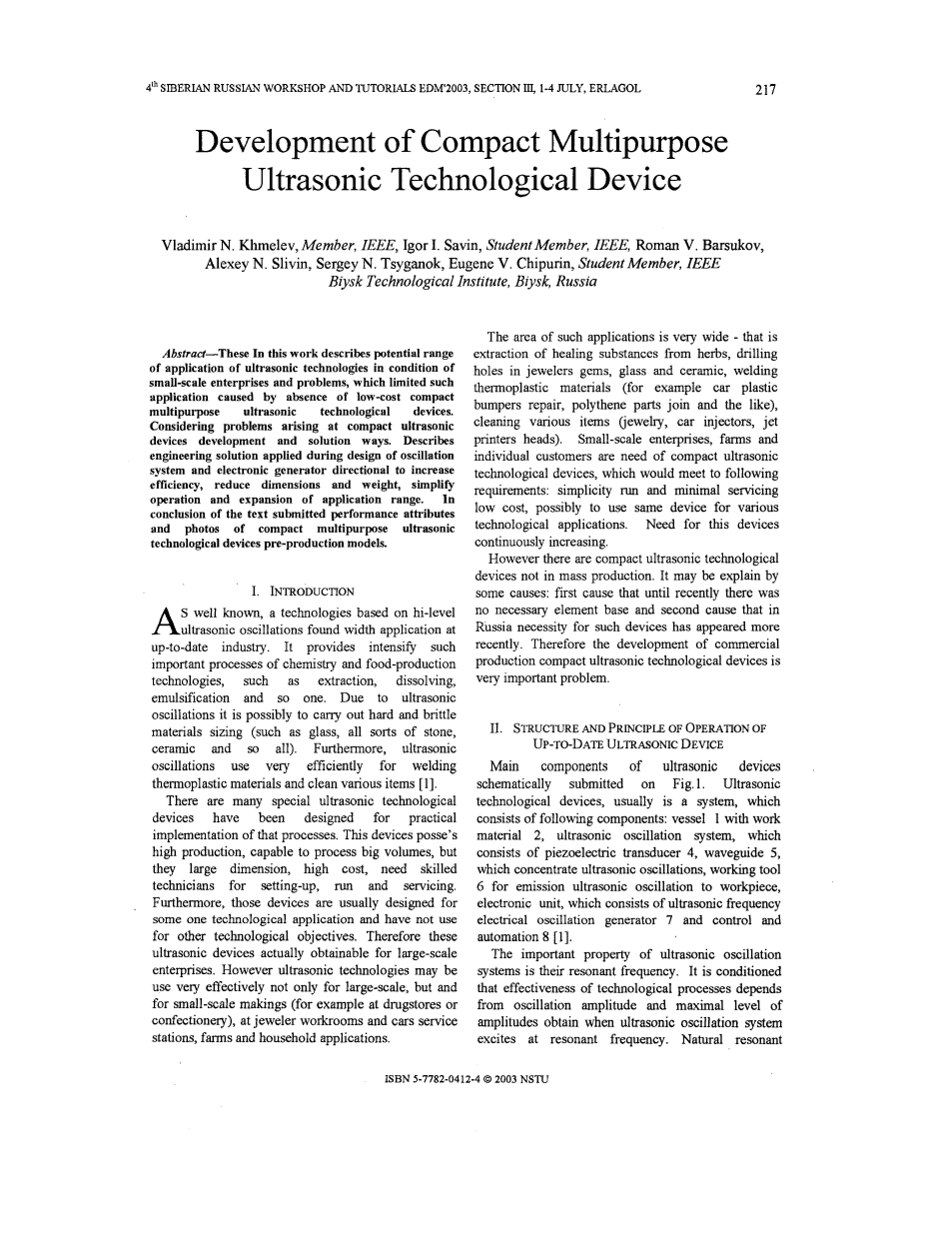 [2] V.N.Khmelev, RV Barsukov, SN Tchyganok“超声波施胶的硬脆材料”。Polzunov AltayState Tcchnical Univcrsity。-Barnaul1999. (俄)