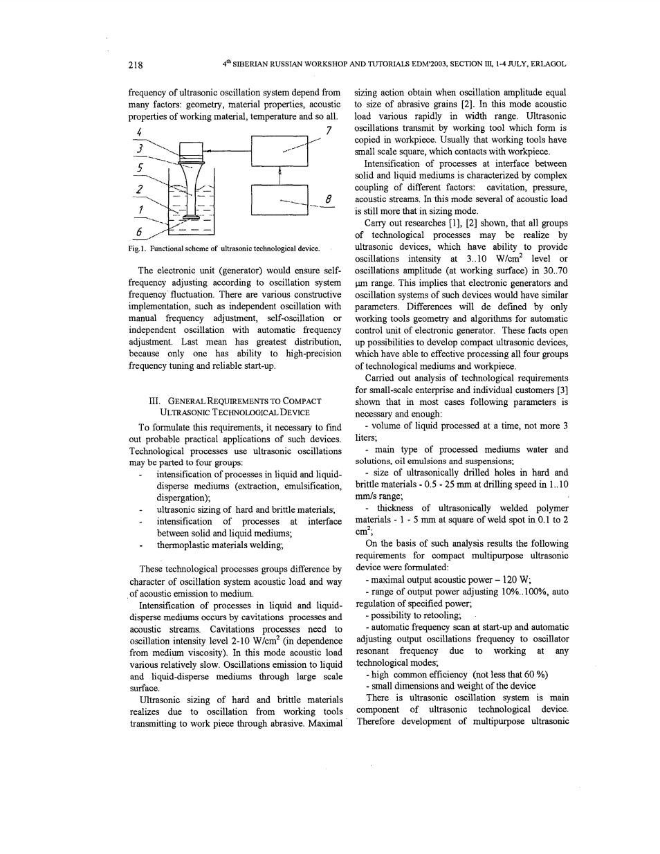 进行研究[1],[2]所示, 所有工艺过程都可以通过超声波装置实现,超声波装置能够提供3..10 W/cmsup2;水平的振荡强度或振荡幅度(工作时)表面)在30-70um范围。这意味着这种装置的电子发生器和振荡系统将具有类似的参数。仅通过电子发电机的自动控制单元的工具几何和算法来定义差异。这些事实为开发紧凑型超声波装置提供了可能性,这些装置能够有效地处理所有四组技术介质和工件。