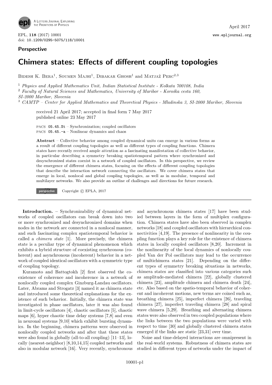 作者:Bidesh K. Bera, Soumen Majhi, Dibakar Ghosh and Matjaˇz Perc国籍:印度