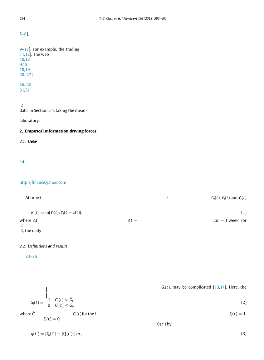 复杂金融系统是一个多主体相互作用的开放系统,其与外部环境的相互作用不容忽视。我们定义了一种基于网络查询数据和股票市场数据的信息驱动力,并分析了它是如何驱动金融系统的。网络数据查询不仅可以反映消息的传递情况,还可以作为投资者交易决策前信息收集过程的代理工具。本节中的计算是基于每周的谷歌搜索量和标准普尔500指数成份股的历史市场数据。