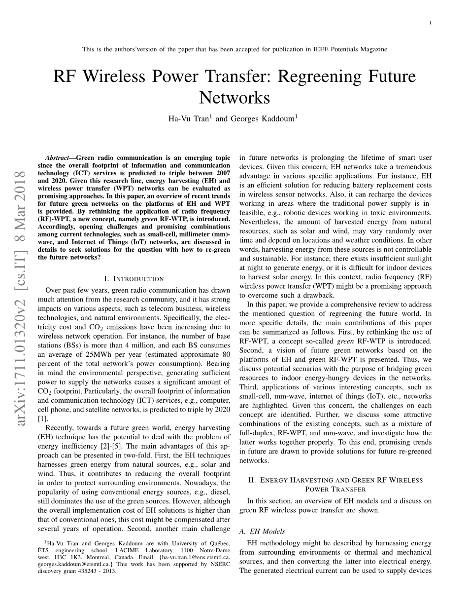 在本节中,显示了EH模型的概述和绿色RF无线功率传输的讨论。