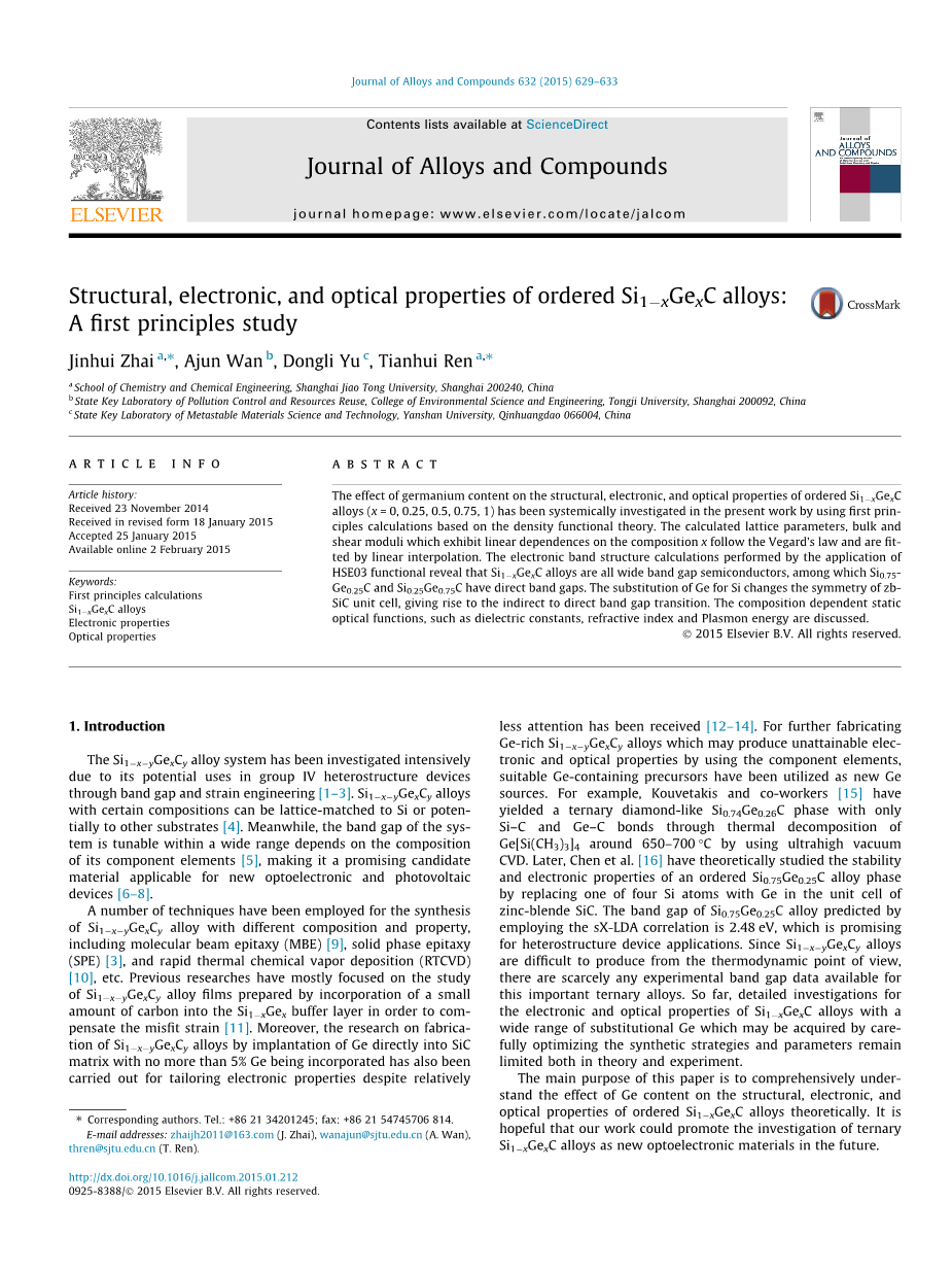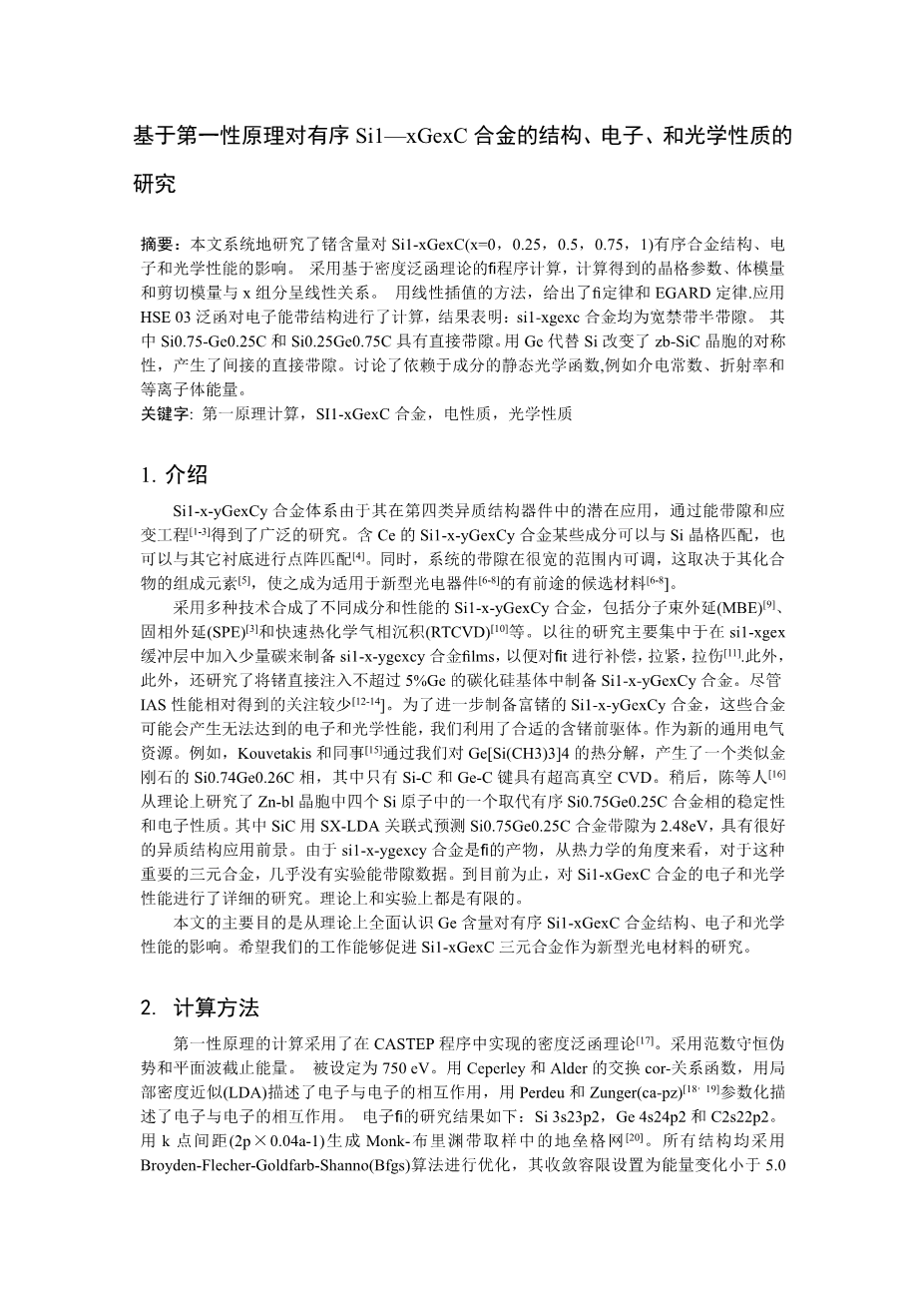 基于第一性原理对有序Sil- -xGexC 合金的结构、电子、和光学性质的 研究外文翻译资料