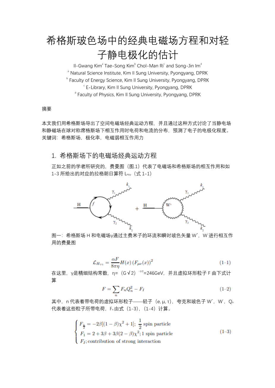 希格斯玻色场中的经典电磁场方程和对轻子静电极化的估计外文翻译资料 2023-03-02 15:00:45 英语原文共 6 页,剩余内容已隐藏,支付完成后下载完整资料 英语译文共 6 页,剩余内容已隐藏,支付完成后下载完整资料 资料编号:[405500],资料为PDF文档或Word文档,PDF文档可免费转换为Word 原文和译文剩余内容已隐藏,您需要先支付 30元 才能查看原文和译文全部内容!立即支付 发小红书推广免费获取该资料资格。点击链接进入获取推广文案即可: Ai一键组稿 | 降AI率 | 降重复率 | 论文一键排版 PREVIOUS NEXT 您可能感兴趣的文章 在裸露的SrTiO3表面二维电子液的产生和调控外文翻译资料 (111)界面上的二维超导性和各向异性传输在外文翻译资料 MoS₂中的一维金属边缘态外文翻译资料 运用量子纠缠加强量子电池系统的能量提取外文翻译资料 GeSe 纳米片和纳米带的可调电子结构外文翻译资料 铁电隧道结中的隧穿异常霍尔效应外文翻译资料 Zn0纳米线表面激振子发射的动力学外文翻译资料 测量碳纳米弹簧的压缩量外文翻译资料 由自绕式纤维执行器驱动的可调节自振系统外文翻译资料 自接触杆的非线性动态缠绕外文翻译资料